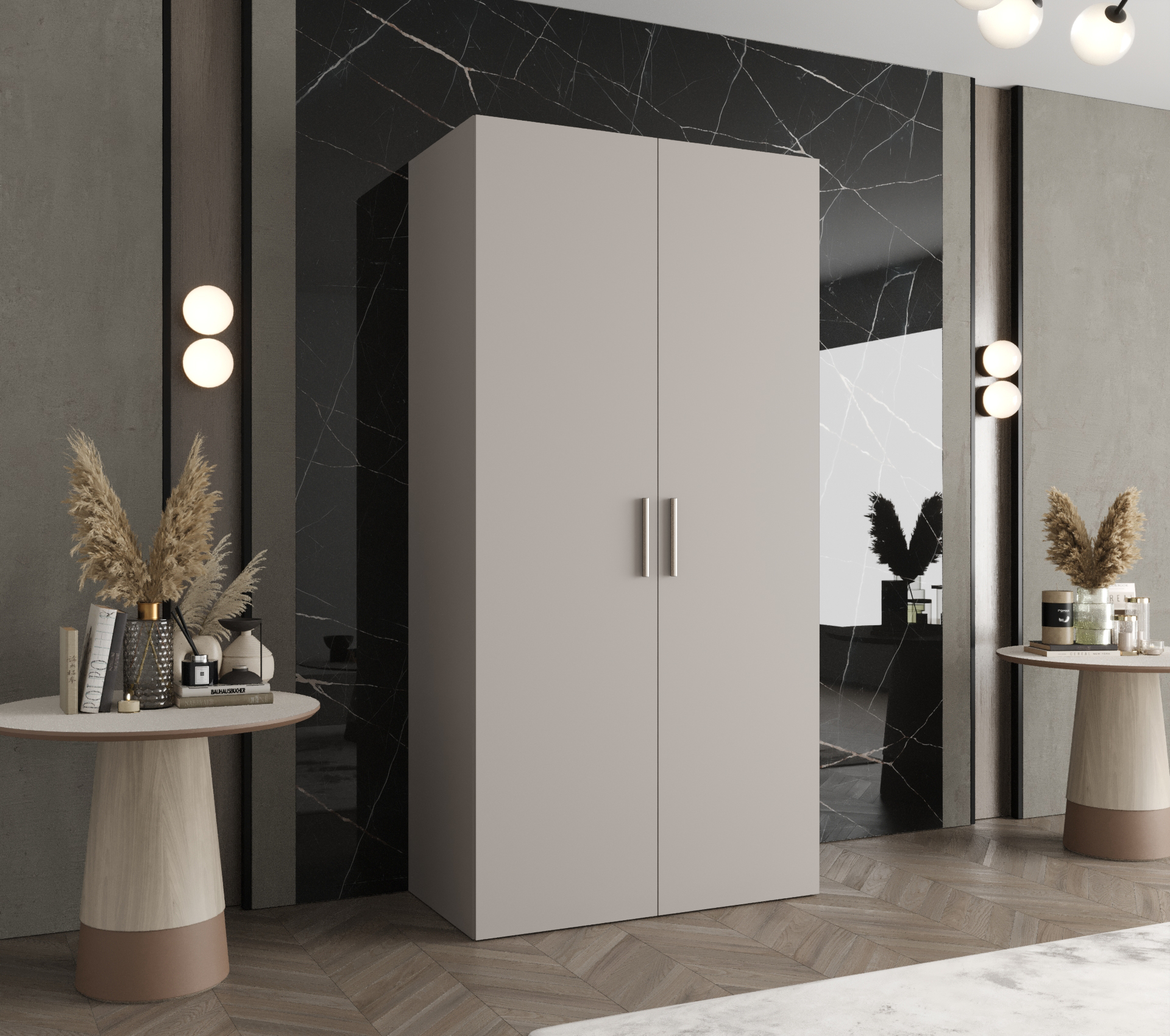 Šatní skříň Abi Bari 1 Rozměry: 100 cm, Pásky / úchyty: Kašmír, Barva korpusu + barva dveří: Kašmír + Kašmír