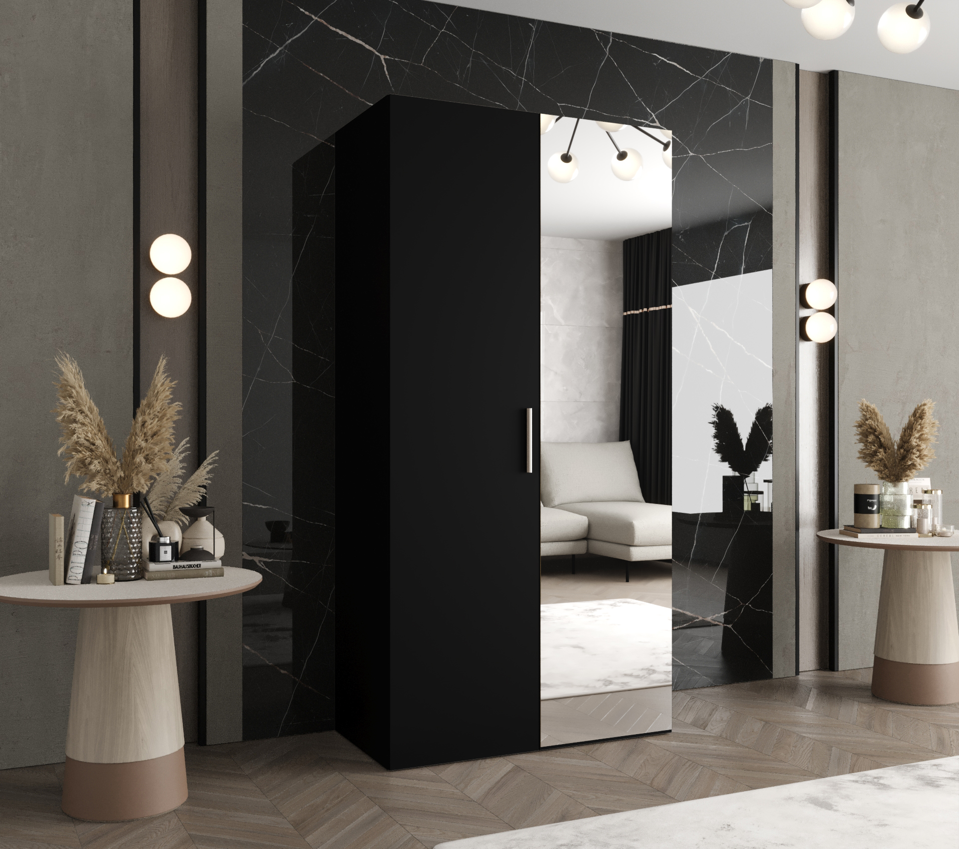 Šatní skříň Abi Bari 2 Rozměry: 100 cm, Pásky / úchyty: Kašmír, Barva korpusu + barva dveří: Černá + Černá
