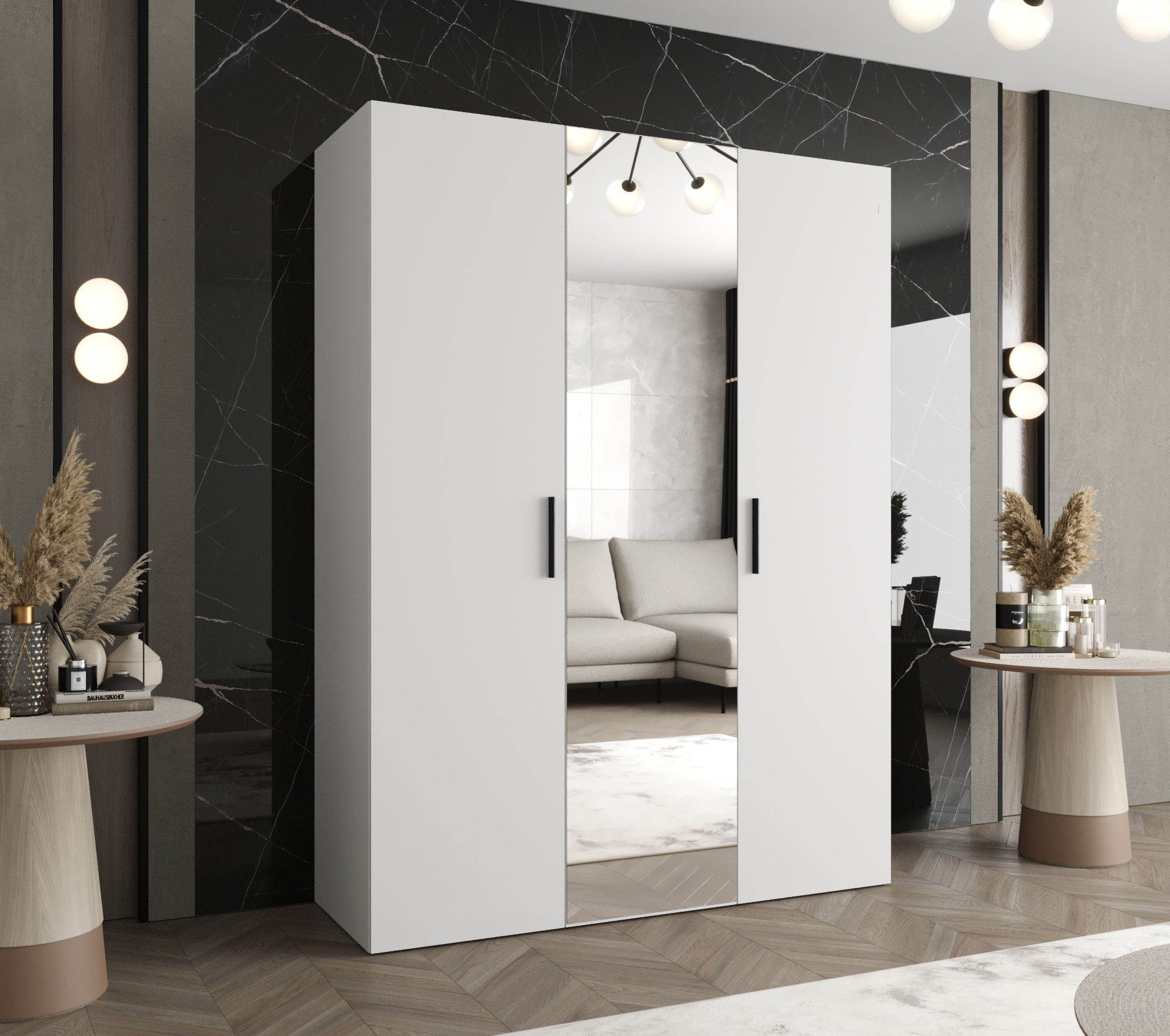 Šatní skříň Abi Bari 2 Kolekce šatních skříní Bari kombinuje eleganci a funkčnost. S postavením několika skříní vedle sebe lze získat unikátní sestavu. Dále Vám šatní skříň také nabídne tři varianty vnitřního uspořádání. • Vlastnosti šatní skříně Materiál Šatní skříň je vyrobena z laminované desky o síle 16 mm. Ohraničené hrany Hrany desek jsou opatřeny PVC dýhou o síle 0,5 mm. Zadní deska Na zadní stranu šatní skříně je použita HDF deska. Úchyty Dveře otevřete pomocí hliníkových úchytů. Doplňky k šatní skříni K šatní skříni je možné dokoupit poličky. • Vnitřní uspořádáníV základní variantě šatní skříň obsahuje šatní tyč a horní polici - počet podle zvoleného rozměru.K šatní skříni je možné si dokoupit navíc poličky.Do šířky 100 cm lze vložit 1 sadu, která obsahuje 2 police.Do šířky 150 cm lze vložit 1 sadu, která obsahuje 2 delší a 2 kratší police.Variantu uspořádání s policemi si zvolíte sami při montáži šatní skříně.Police pro šatní skříně Bari Základní varianta - šířka 100 cm Varianta A - šířka 100 cm Varianta B - šířka 100 cm Základní varianta - šířka 150 cm Varianta A - šířka 150 cm Varianta B - šířka 150 cm • Barevné varianty:Šatní skříně Abi Bari jsou dostupné ve čtyřech odstínech. Kromě barevného provedení korpusu a dveří si zvolíte také provedení úchytů.Korpus + dveřeÚchytyBíláČernáČernáKašmírDub artisanZlatáKašmírZlaté úchyty NELZE kombinovat s barevnou variantou dub artisan. • Rozměry 202 cm celková výška 100 / 150 cm celková šířka 50 cm celková hloubka 16 mm tloušťka desky • Sestava šatních skříní Abi Bari 2 S postavením několika skříní vedle sebe lze získat unikátní sestavu, která může dosahovat délky až 300 cm. Sestava o šířce 200 cm (2x šířka 100 cm) Sestava o šířce 250 cm (1x šířka 100 cm a 1x šířka 150 cm) Sestava o šířce 300 cm (2x šířka 150 cm) • Další varianty šatní skříně Abi Bari Šatní skříň Bari 1 Zobrazit... Šatní skříň Bari 2 Zobrazit... •