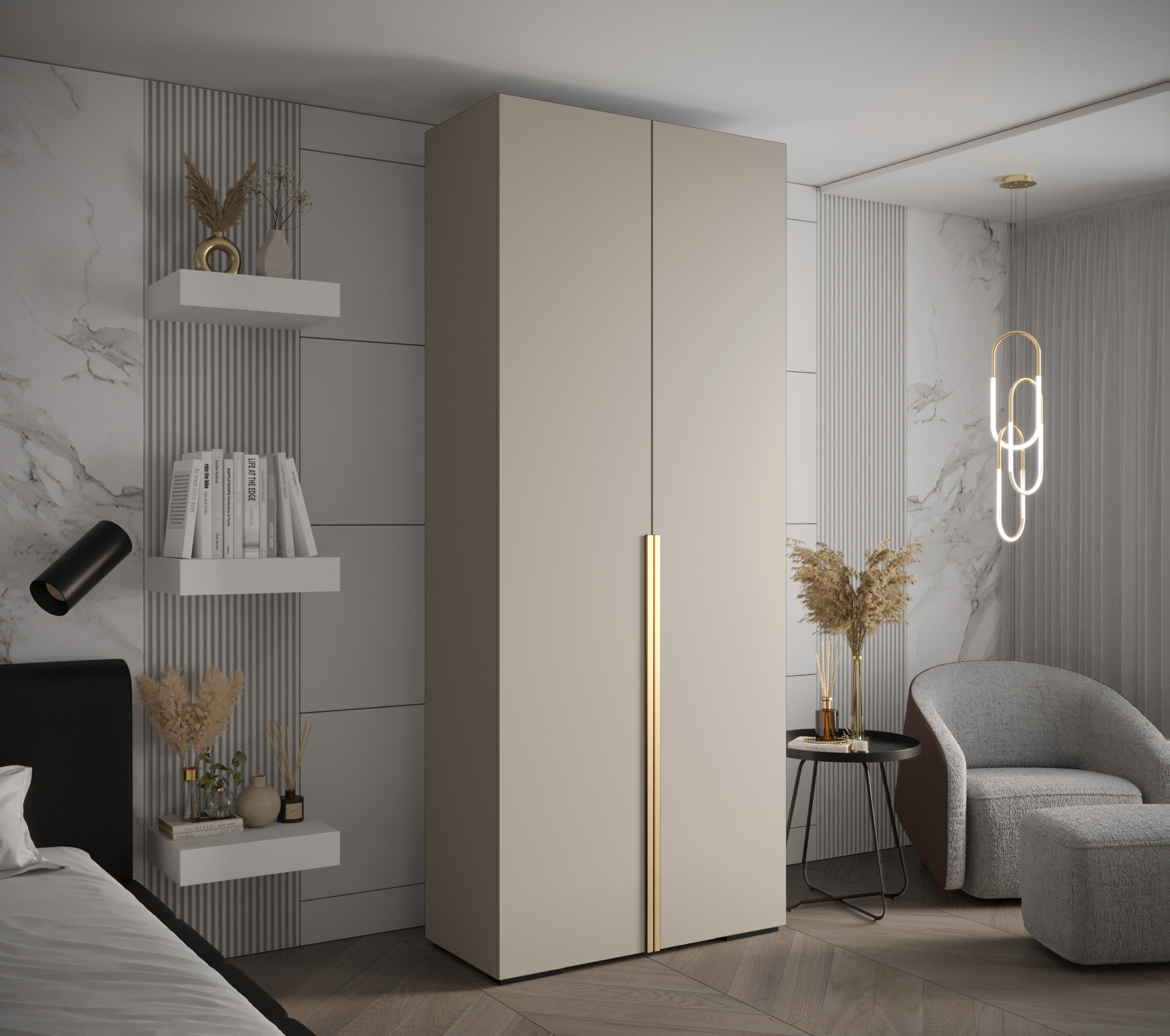 Šatní skříň Abi Inova 1 Rozměry: 100 cm, Pásky / úchyty: Zlatý, Barva korpusu + barva dveří: Kašmír