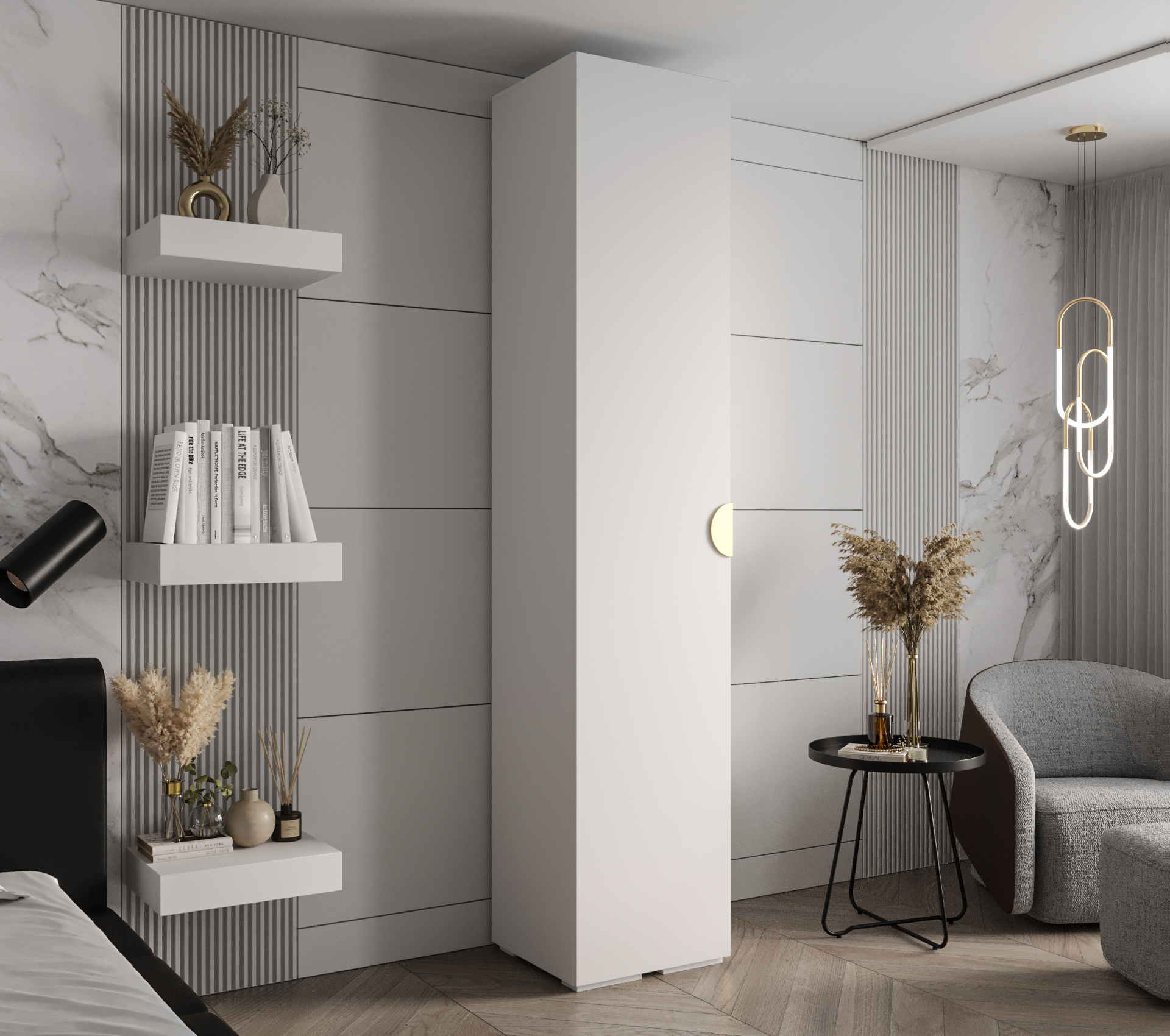 Šatní skříň Abi Inova 4 Moderní šatní skříň Abi Inova má klasické otevírání dveří. S postavením několika skříní vedle sebe lze získat unikátní sestavu. Dále Vám šatní skříň také nabídne několik variant vnitřního uspořádání. • Vlastnosti šatní skříně Korpus a dveře skříně Korpus a dveře šatní skříně je vyroben z laminované desky o síle 16 mm. Ohraničené hrany Hrany desek jsou opatřeny PVC dýhou o síle 0,5 mm. Zadní deska Na zadní stranu šatní skříně je použita HDF deska. Doplňky k šatní skříni K šatní skříni je možné dokoupit poličky - 1 sada obsahuje 2 poličky. • Vnitřní uspořádáníŠÍŘKA 50 cmŠÍŘKA 100 cmZákladní uspořádání: 1x věšák + 3x policeZákladní uspořádání: 2x věšák + 6x policeDruhá varianta: 5x policeDruhá varianta: 1x věšák + 8x policeTřetí varianta: 10x policeK šatní skříni je možné si dokoupit navíc poličky - 1 sada obsahuje 2 poličky.Díky několika variantám vnitřního uspořádání si lze sestavit vlastní variantu, která bude přesně vyhovovat Vašim požadavkům. Základní varianta Druhá varianta Třetí varianta • Barevné varianty: Šatní skříně Abi Inova jsou dostupné ve třech odstínech: Bílá, černá nebo kašmír. u každé varianty si lze zvolit také provedení úchytů a to buď v černé nebo zlaté barvě. Bílá matná - korpus a dveře Černá matná - korpus a dveře Kašmír - Korpus a dveře Černá nebo zlatá - Úchyty • Rozměry 236,7 cm celková výška 50 / 100 cm celková šířka 47 cm celková hloubka 16 mm tloušťka desky • Podobné varianty této šatní skříně Zaujala Vás tato šatní skříň, ale představovali by jste si jiný design úchytu nebo barevnou variantu? Jedním kliknutím na odkazy níže se Vám nabídnou další šatní skříně. Šatní skříň Inova 1 Zobrazit produkt Šatní skříň Inova 2 Zobrazit produkt Šatní skříň Inova 3 Zobrazit produkt Šatní skříň Inova 4 Zobrazit produkt •