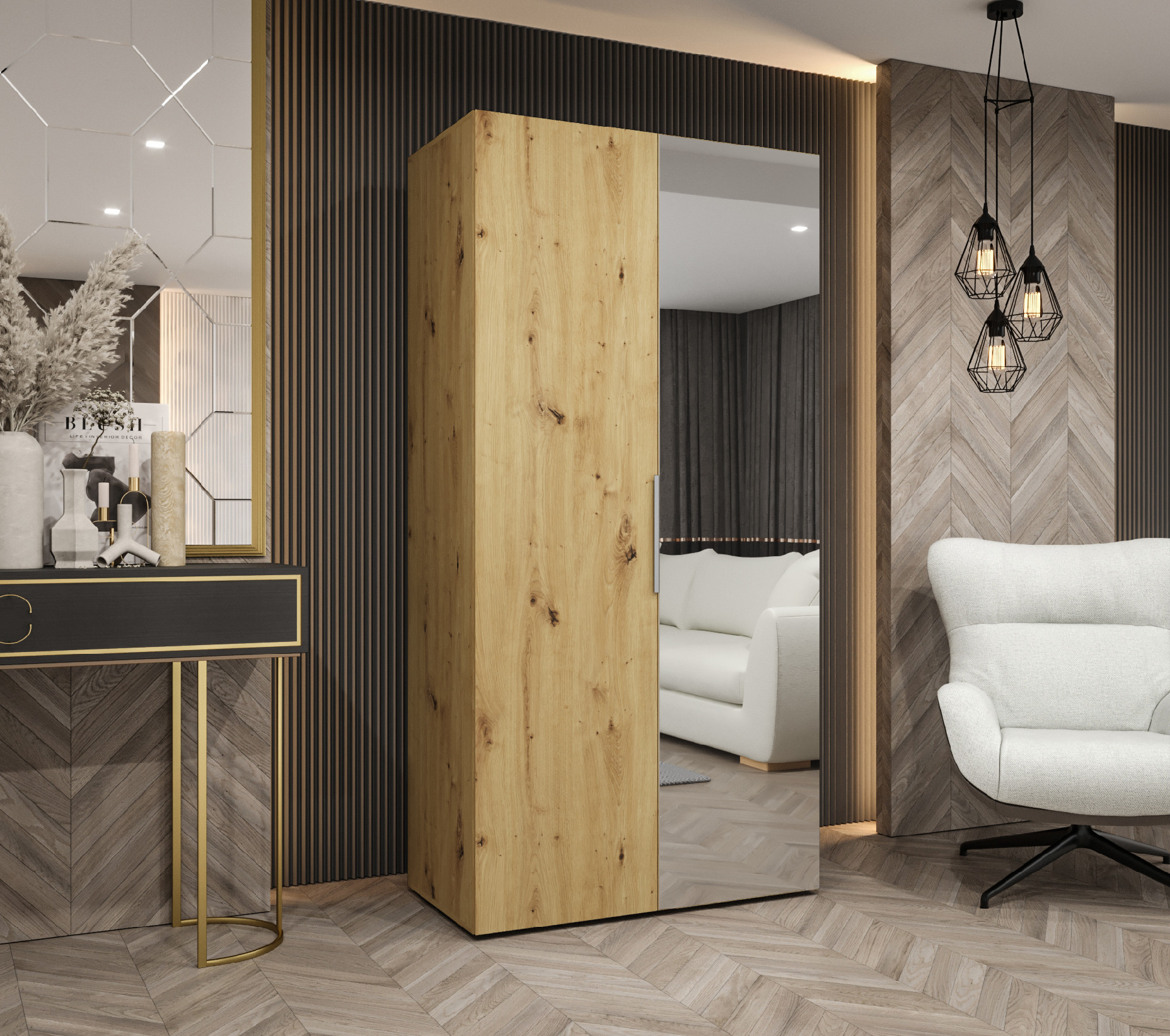 Domů Nábytek Ložnice Skříně a komody Šatní skříně Šatní skříň Abi Marbella 2 Rozměry: 100 cm, Pásky / úchyty: Stříbrné, Barva korpusu + barva dveří: Dub artisan + Dub artisan