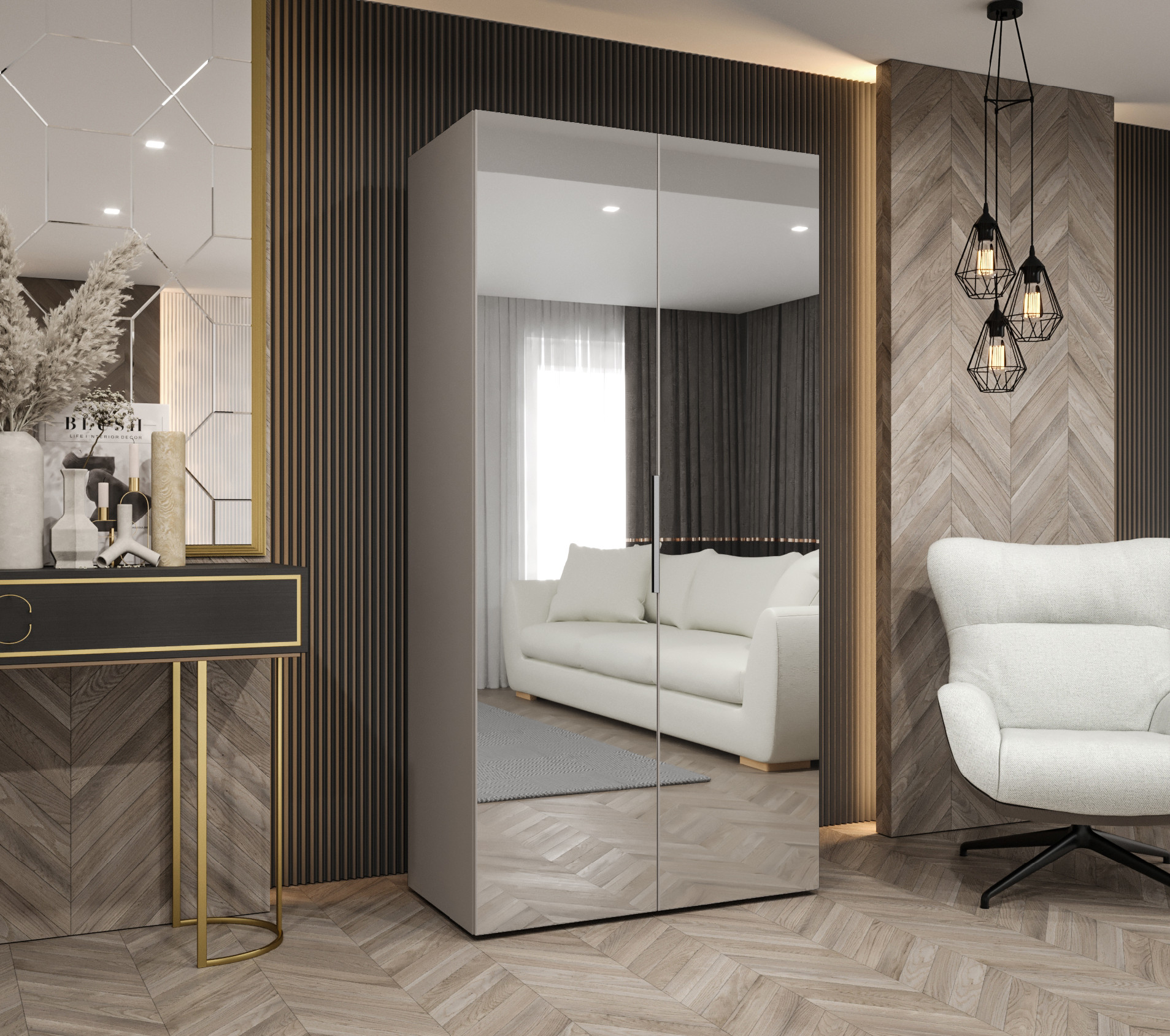 Šatní skříň Abi Marbella 3 Rozměry: 100 cm, Pásky / úchyty: Stříbrné, Barva korpusu + barva dveří: Kašmír + zrcadlo