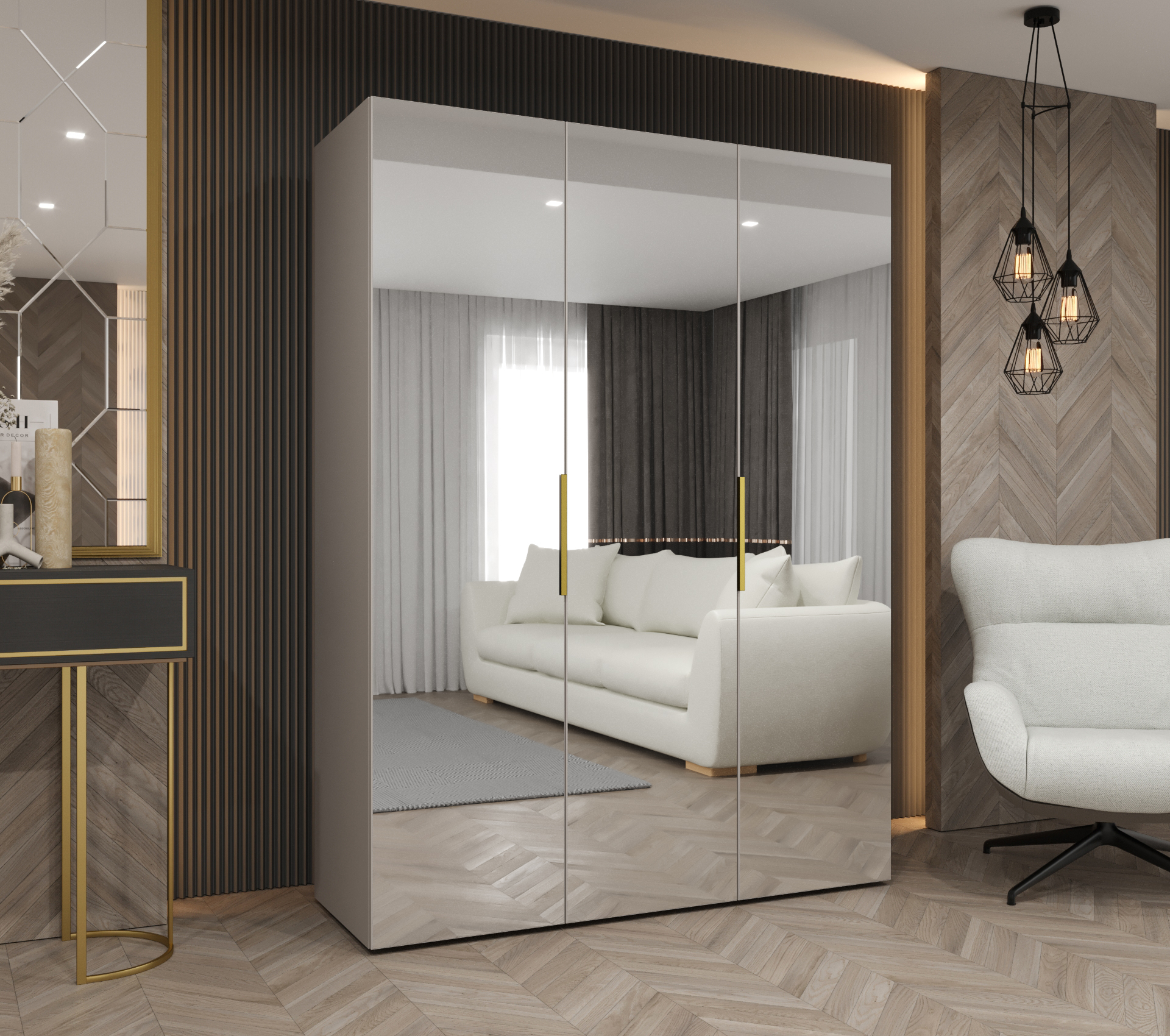 Šatní skříň Abi Marbella 3 Rozměry: 150 cm, Pásky / úchyty: Zlatý, Barva korpusu + barva dveří: Kašmír + zrcadlo