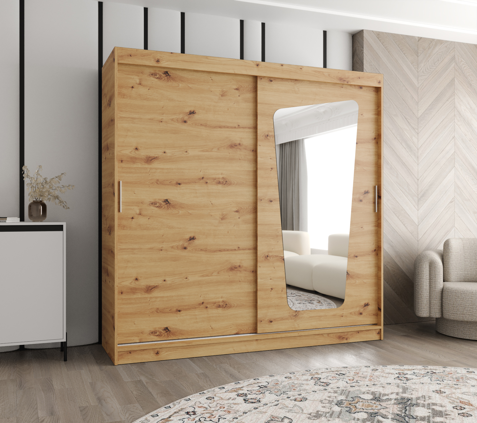 Šatní skříň Abi Moka Hledáte moderní šatní skříň s posuvnými dveřmi, která vás okouzlí svým originálním vzhledem? Nehledejte nic jiného než šatní skříň Abi Moka! Šatní skříň nabízí velký úložný prostor a kvalitu. Můžete si vybrat z několika velikostí a barev, takže se skříň přizpůsobí vašim potřebám. • Vlastnosti šatní skříně Korpus a posuvné dveře Korpus a dveře jsou vyrobeny z kvalitní laminované dřevotřískové desky o síle 16 mm. PVC hrany Hrany desek jsou opatřeny PVC dýhou o síle 0,5 mm Zrcadlo Na dveřích vám bude k dispozici leštěné zrcadlo. Úchyty K otevření šatní skříně vám poslouží plastové stříbrné úchyty. Vnitřní uspořádání Základem vnitřního uspořádání jsou dvě šatní šatní a police - lze si dokoupit zásuvky. • Barevné varianty: Šatní skříň Abi Moka je dostupná v dekorech a barvách dub artisan, kašmír, černá a bílá. Jednotlivé odstíny není možné mezi sebou kombinovat. dub artisan kašmír černá bílá • Rozměry 200 cm celková výška 6 rozměrů celková šířka 62 cm celková hloubka 16 mm tloušťka desky 6 rozměrů šířka 100 cmšířka 120 cmšířka 150 cmšířka 180 cmšířka 200 cmšířka 250 cm Detailní rozpis jednotlivých balíků při přepravěV odkazu níže naleznete podrobnosti týkající se počtu balíků, jejich rozměry a váhuRozpis jednotlivých balíků • ZásuvkyPraktické rozšíření univerzální a stylové skříně Abi o nástavec se zásuvkami. Elegantní rozšíření se dvěma, nebo od šířky 180 cm, dokonce se čtyřmi šuplíky je ideální pro rozšíření skříně o další úložný prostor. Barevné provedení zásuvek je stejné jako korpus šatní skříně. vnitřní uspořádání do šířky 150 cm rozšíření o šuplíky u šířky do 150 cm vnitřní uspořádání od šířky 180 cm rozšíření o šuplíky od šířky 180 cm • Další modely šatních skříní z řady AbiZaujala Vás tato šatní skříň, ale představovali by jste si jiný rozměr, barevnou kombinaci nebo variantu zrcadla? Jedním kliknutím na odkaz níže se vám nabídnou další šatní skříně. A další výhodou těchto šatních skříní je i možnost dokoupení nástavců. Zobrazit další modely... • Další součásti ložniceVybavujete nový byt nebo chcete obměnit svůj stávají nábytek v ložnici? Postel je středem veškerého dění v místnosti. V naší nabídce naleznete veškeré komponenty ložnice.Zobrazit další nábytek.... • Zboží dodáváme po celé České republice! Dodáváme v demontu s podrobným instruktážním návodem. Objednat si také můžete naše doplňkové služby jako je montáž na místě, výnos do patra nebo ekologickou likvidaci starého nábytku. Požadované služby přidejte do košíku v objednávce. Montáž na místě Pokud se nechcete trápit s montáží, rádi Vám sestavíme nábytek na místě Výnos až do bytu Nechcete se tahat se zakoupeným zbožím? Rádi vám nábytek vyneseme až do bytu. Doprava ČR Zboží vám dopravíme až k domu za první uzamykatelné dveře po celé České republice. Ekologická likvidace Pokud si přejete, můžeme odvést starý nábytek a ekologicky jej nechat zlikvidovat. Ceník doplňkových služeb - výnos, ekolikvidace a montáž Upozornění Produkty prezentované na fotografiích jsou ilustračním materiálem, barvy se mohou lišit od vyobrazení na fotografiích podle nastavení vašeho zobrazovacího zařízení.
