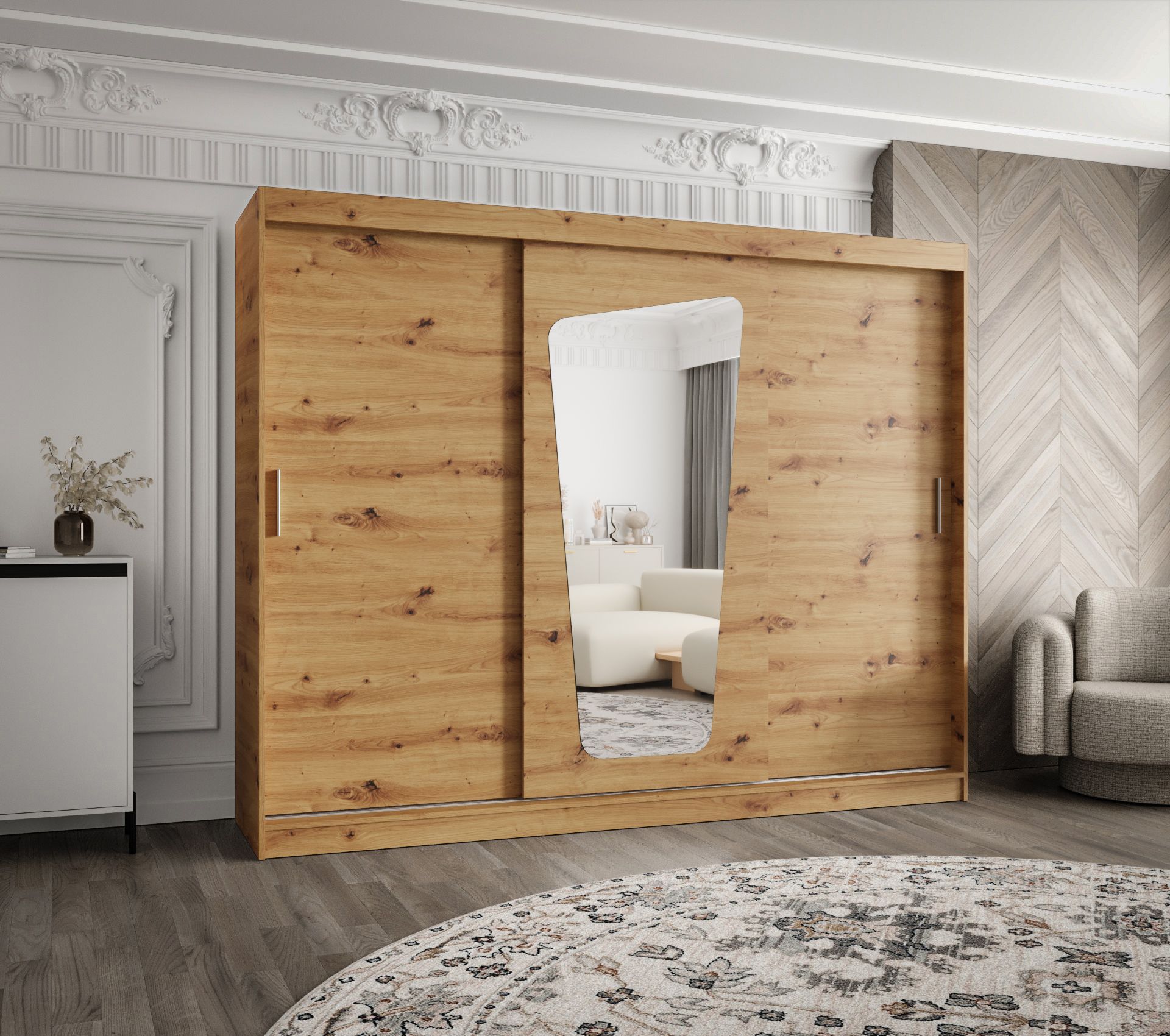 Šatní skříň Abi Moka Hledáte moderní šatní skříň s posuvnými dveřmi, která vás okouzlí svým originálním vzhledem? Nehledejte nic jiného než šatní skříň Abi Moka! Šatní skříň nabízí velký úložný prostor a kvalitu. Můžete si vybrat z několika velikostí a barev, takže se skříň přizpůsobí vašim potřebám. • Vlastnosti šatní skříně Korpus a posuvné dveře Korpus a dveře jsou vyrobeny z kvalitní laminované dřevotřískové desky o síle 16 mm. PVC hrany Hrany desek jsou opatřeny PVC dýhou o síle 0,5 mm Zrcadlo Na dveřích vám bude k dispozici leštěné zrcadlo. Úchyty K otevření šatní skříně vám poslouží plastové stříbrné úchyty. Vnitřní uspořádání Základem vnitřního uspořádání jsou dvě šatní šatní a police - lze si dokoupit zásuvky. • Barevné varianty: Šatní skříň Abi Moka je dostupná v dekorech a barvách dub artisan, kašmír, černá a bílá. Jednotlivé odstíny není možné mezi sebou kombinovat. dub artisan kašmír černá bílá • Rozměry 200 cm celková výška 6 rozměrů celková šířka 62 cm celková hloubka 16 mm tloušťka desky 6 rozměrů šířka 100 cmšířka 120 cmšířka 150 cmšířka 180 cmšířka 200 cmšířka 250 cm Detailní rozpis jednotlivých balíků při přepravěV odkazu níže naleznete podrobnosti týkající se počtu balíků, jejich rozměry a váhuRozpis jednotlivých balíků • ZásuvkyPraktické rozšíření univerzální a stylové skříně Abi o nástavec se zásuvkami. Elegantní rozšíření se dvěma, nebo od šířky 180 cm, dokonce se čtyřmi šuplíky je ideální pro rozšíření skříně o další úložný prostor. Barevné provedení zásuvek je stejné jako korpus šatní skříně. vnitřní uspořádání do šířky 150 cm rozšíření o šuplíky u šířky do 150 cm vnitřní uspořádání od šířky 180 cm rozšíření o šuplíky od šířky 180 cm • Další modely šatních skříní z řady AbiZaujala Vás tato šatní skříň, ale představovali by jste si jiný rozměr, barevnou kombinaci nebo variantu zrcadla? Jedním kliknutím na odkaz níže se vám nabídnou další šatní skříně. A další výhodou těchto šatních skříní je i možnost dokoupení nástavců. Zobrazit další modely... • Další součásti ložniceVybavujete nový byt nebo chcete obměnit svůj stávají nábytek v ložnici? Postel je středem veškerého dění v místnosti. V naší nabídce naleznete veškeré komponenty ložnice.Zobrazit další nábytek.... • Zboží dodáváme po celé České republice! Dodáváme v demontu s podrobným instruktážním návodem. Objednat si také můžete naše doplňkové služby jako je montáž na místě, výnos do patra nebo ekologickou likvidaci starého nábytku. Požadované služby přidejte do košíku v objednávce. Montáž na místě Pokud se nechcete trápit s montáží, rádi Vám sestavíme nábytek na místě Výnos až do bytu Nechcete se tahat se zakoupeným zbožím? Rádi vám nábytek vyneseme až do bytu. Doprava ČR Zboží vám dopravíme až k domu za první uzamykatelné dveře po celé České republice. Ekologická likvidace Pokud si přejete, můžeme odvést starý nábytek a ekologicky jej nechat zlikvidovat. Ceník doplňkových služeb - výnos, ekolikvidace a montáž Upozornění Produkty prezentované na fotografiích jsou ilustračním materiálem, barvy se mohou lišit od vyobrazení na fotografiích podle nastavení vašeho zobrazovacího zařízení.