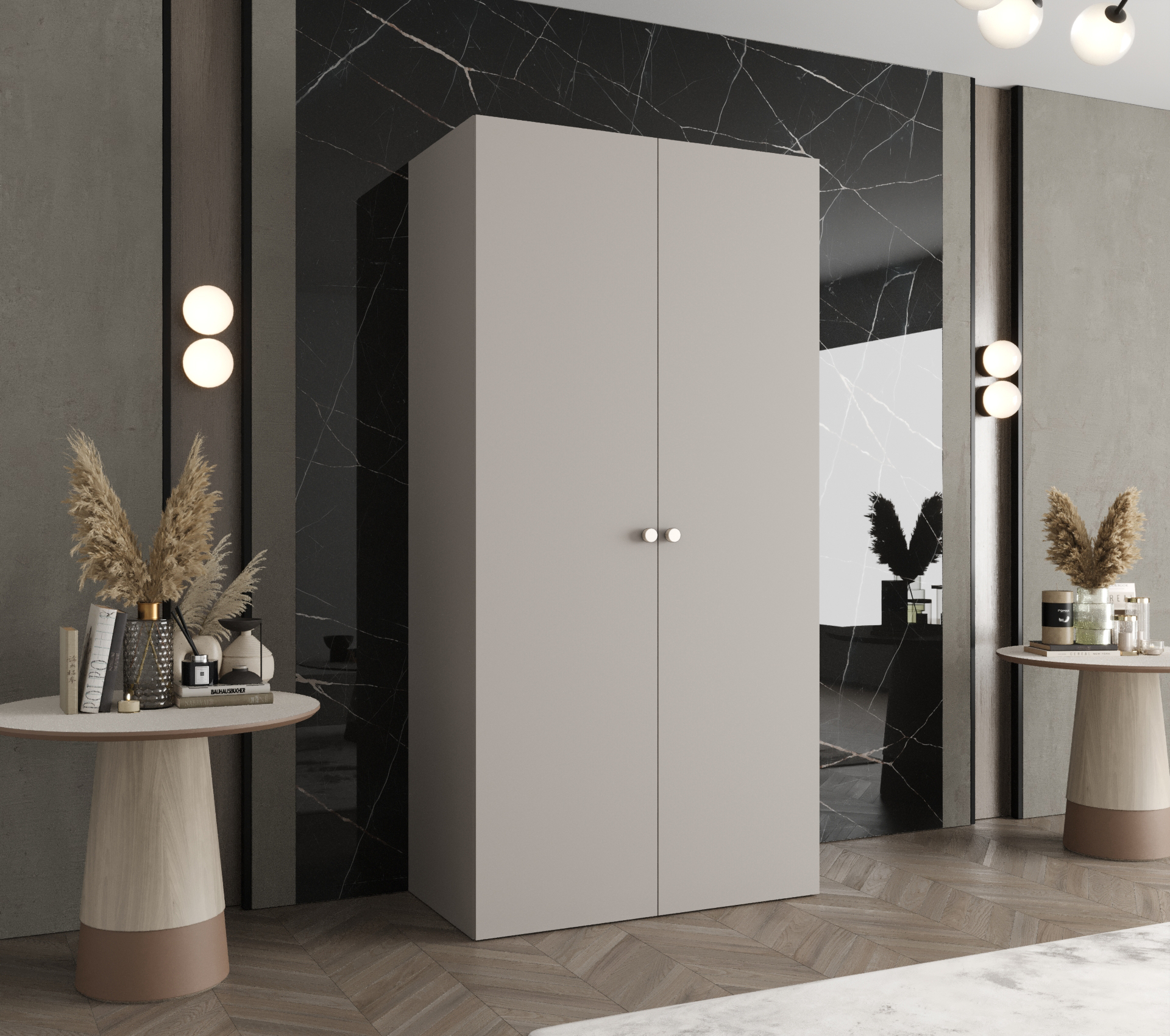 Šatní skříň Abi Parma 1 Rozměry: 100 cm, Pásky / úchyty: Kašmír, Barva korpusu + barva dveří: Kašmír + Kašmír