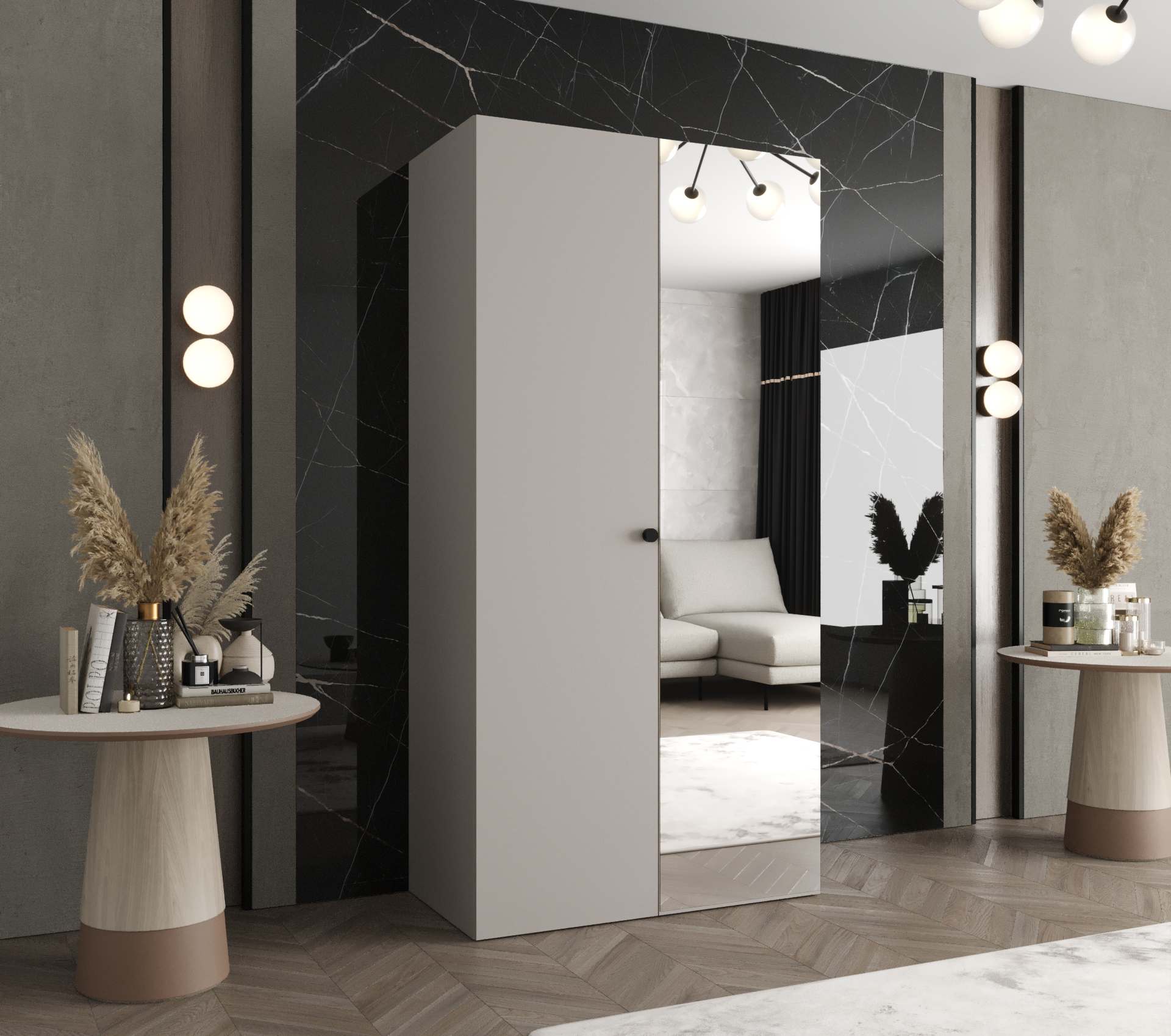 Šatní skříň Abi Parma 2 Rozměry: 100 cm, Pásky / úchyty: Černá, Barva korpusu + barva dveří: Kašmír + Kašmír