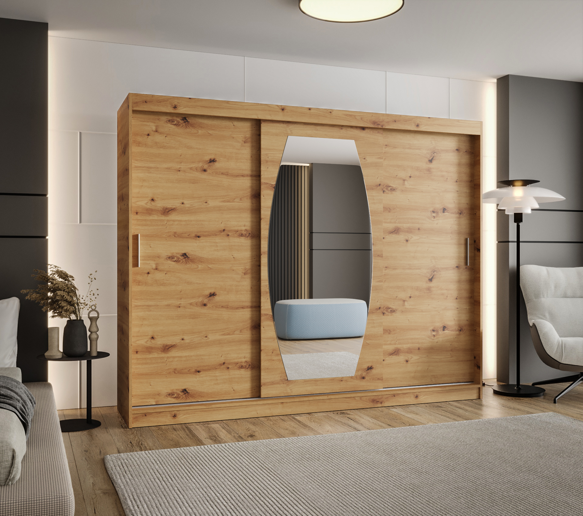 Šatní skříň Abi Rossa Hledáte moderní šatní skříň s posuvnými dveřmi, která vás okouzlí svým originálním vzhledem? Nehledejte nic jiného než šatní skříň Abi Rossa! Šatní skříň nabízí velký úložný prostor a kvalitu. Můžete si vybrat z několika velikostí a barev, takže se skříň přizpůsobí vašim potřebám. • Vlastnosti šatní skříně Korpus a posuvné dveře Korpus a dveře jsou vyrobeny z kvalitní laminované dřevotřískové desky o síle 16 mm. PVC hrany Hrany desek jsou opatřeny PVC dýhou o síle 0,5 mm Zrcadlo Na dveřích vám bude k dispozici leštěné zrcadlo. Úchyty K otevření šatní skříně vám poslouží plastové stříbrné úchyty. Vnitřní uspořádání Základem vnitřního uspořádání jsou dvě šatní šatní a police - lze si dokoupit zásuvky. • Barevné varianty: Šatní skříň Abi Rossa je dostupná v dekorech a barvách dub artisan, kašmír, černá a bílá. Jednotlivé odstíny není možné mezi sebou kombinovat. dub artisan kašmír černá bílá • Rozměry 200 cm celková výška 6 rozměrů celková šířka 62 cm celková hloubka 16 mm tloušťka desky 6 rozměrů šířka 100 cmšířka 120 cmšířka 150 cmšířka 180 cmšířka 200 cmšířka 250 cm Detailní rozpis jednotlivých balíků při přepravěV odkazu níže naleznete podrobnosti týkající se počtu balíků, jejich rozměry a váhuRozpis jednotlivých balíků • ZásuvkyPraktické rozšíření univerzální a stylové skříně Abi o nástavec se zásuvkami. Elegantní rozšíření se dvěma, nebo od šířky 180 cm, dokonce se čtyřmi šuplíky je ideální pro rozšíření skříně o další úložný prostor. Barevné provedení zásuvek je stejné jako korpus šatní skříně. vnitřní uspořádání do šířky 150 cm rozšíření o šuplíky u šířky do 150 cm vnitřní uspořádání od šířky 180 cm rozšíření o šuplíky od šířky 180 cm • Další modely šatních skříní z řady AbiZaujala Vás tato šatní skříň, ale představovali by jste si jiný rozměr, barevnou kombinaci nebo variantu zrcadla? Jedním kliknutím na odkaz níže se vám nabídnou další šatní skříně. A další výhodou těchto šatních skříní je i možnost dokoupení nástavců. Zobrazit další modely... • Další součásti ložniceVybavujete nový byt nebo chcete obměnit svůj stávají nábytek v ložnici? Postel je středem veškerého dění v místnosti. V naší nabídce naleznete veškeré komponenty ložnice.Zobrazit další nábytek.... • Zboží dodáváme po celé České republice! Dodáváme v demontu s podrobným instruktážním návodem. Objednat si také můžete naše doplňkové služby jako je montáž na místě, výnos do patra nebo ekologickou likvidaci starého nábytku. Požadované služby přidejte do košíku v objednávce. Montáž na místě Pokud se nechcete trápit s montáží, rádi Vám sestavíme nábytek na místě Výnos až do bytu Nechcete se tahat se zakoupeným zbožím? Rádi vám nábytek vyneseme až do bytu. Doprava ČR Zboží vám dopravíme až k domu za první uzamykatelné dveře po celé České republice. Ekologická likvidace Pokud si přejete, můžeme odvést starý nábytek a ekologicky jej nechat zlikvidovat. Ceník doplňkových služeb - výnos, ekolikvidace a montáž Upozornění Produkty prezentované na fotografiích jsou ilustračním materiálem, barvy se mohou lišit od vyobrazení na fotografiích podle nastavení vašeho zobrazovacího zařízení.