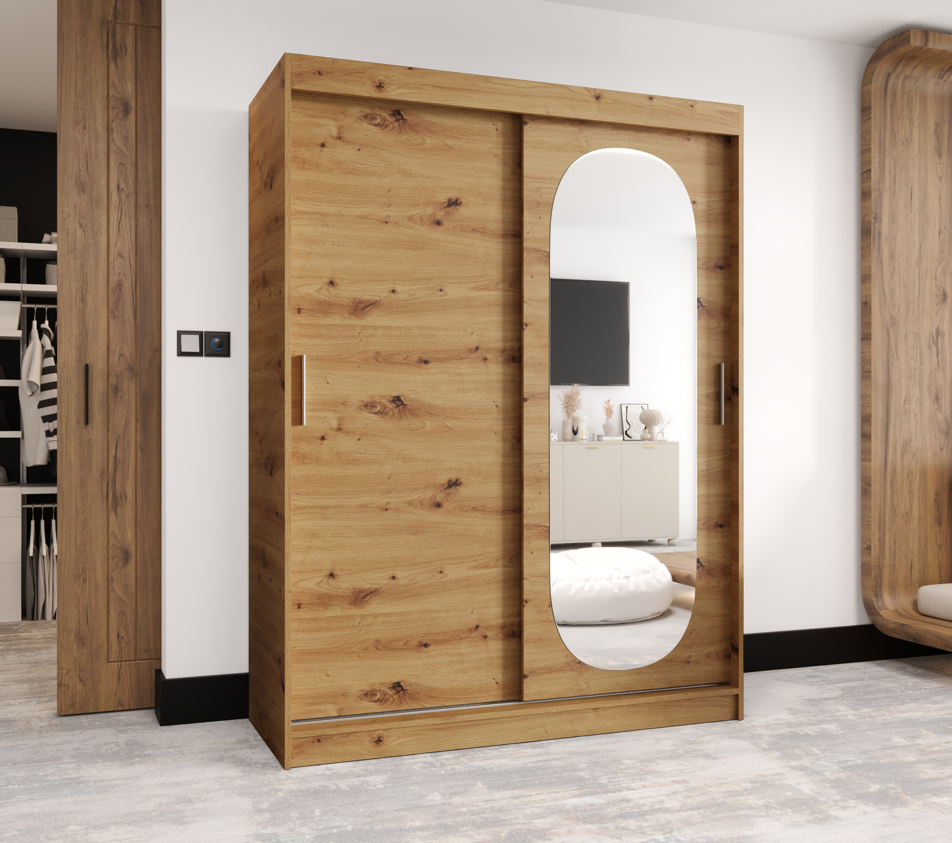 Šatní skříň Abi Royal Hledáte moderní šatní skříň s posuvnými dveřmi, která vás okouzlí svým originálním vzhledem? Nehledejte nic jiného než šatní skříň Abi Royal! Šatní skříň nabízí velký úložný prostor a kvalitu. Můžete si vybrat z několika velikostí a barev, takže se skříň přizpůsobí vašim potřebám. • Vlastnosti šatní skříně Korpus a posuvné dveře Korpus a dveře jsou vyrobeny z kvalitní laminované dřevotřískové desky o síle 16 mm. PVC hrany Hrany desek jsou opatřeny PVC dýhou o síle 0,5 mm Zrcadlo Na dveřích vám bude k dispozici leštěné zrcadlo. Úchyty K otevření šatní skříně vám poslouží plastové stříbrné úchyty. Vnitřní uspořádání Základem vnitřního uspořádání jsou dvě šatní šatní a police - lze si dokoupit zásuvky. • Barevné varianty: Šatní skříň Abi Royal je dostupná v dekorech a barvách dub artisan, kašmír, černá a bílá. Jednotlivé odstíny není možné mezi sebou kombinovat. dub artisan kašmír černá bílá • Rozměry 200 cm celková výška 6 rozměrů celková šířka 62 cm celková hloubka 16 mm tloušťka desky 6 rozměrů šířka 100 cmšířka 120 cmšířka 150 cmšířka 180 cmšířka 200 cmšířka 250 cm Detailní rozpis jednotlivých balíků při přepravěV odkazu níže naleznete podrobnosti týkající se počtu balíků, jejich rozměry a váhuRozpis jednotlivých balíků • ZásuvkyPraktické rozšíření univerzální a stylové skříně Abi o nástavec se zásuvkami. Elegantní rozšíření se dvěma, nebo od šířky 180 cm, dokonce se čtyřmi šuplíky je ideální pro rozšíření skříně o další úložný prostor. Barevné provedení zásuvek je stejné jako korpus šatní skříně. vnitřní uspořádání do šířky 150 cm rozšíření o šuplíky u šířky do 150 cm vnitřní uspořádání od šířky 180 cm rozšíření o šuplíky od šířky 180 cm • Další modely šatních skříní z řady AbiZaujala Vás tato šatní skříň, ale představovali by jste si jiný rozměr, barevnou kombinaci nebo variantu zrcadla? Jedním kliknutím na odkaz níže se vám nabídnou další šatní skříně. A další výhodou těchto šatních skříní je i možnost dokoupení nástavců. Zobrazit další modely... • Další součásti ložniceVybavujete nový byt nebo chcete obměnit svůj stávají nábytek v ložnici? Postel je středem veškerého dění v místnosti. V naší nabídce naleznete veškeré komponenty ložnice.Zobrazit další nábytek.... • Zboží dodáváme po celé České republice! Dodáváme v demontu s podrobným instruktážním návodem. Objednat si také můžete naše doplňkové služby jako je montáž na místě, výnos do patra nebo ekologickou likvidaci starého nábytku. Požadované služby přidejte do košíku v objednávce. Montáž na místě Pokud se nechcete trápit s montáží, rádi Vám sestavíme nábytek na místě Výnos až do bytu Nechcete se tahat se zakoupeným zbožím? Rádi vám nábytek vyneseme až do bytu. Doprava ČR Zboží vám dopravíme až k domu za první uzamykatelné dveře po celé České republice. Ekologická likvidace Pokud si přejete, můžeme odvést starý nábytek a ekologicky jej nechat zlikvidovat. Ceník doplňkových služeb - výnos, ekolikvidace a montáž Upozornění Produkty prezentované na fotografiích jsou ilustračním materiálem, barvy se mohou lišit od vyobrazení na fotografiích podle nastavení vašeho zobrazovacího zařízení.