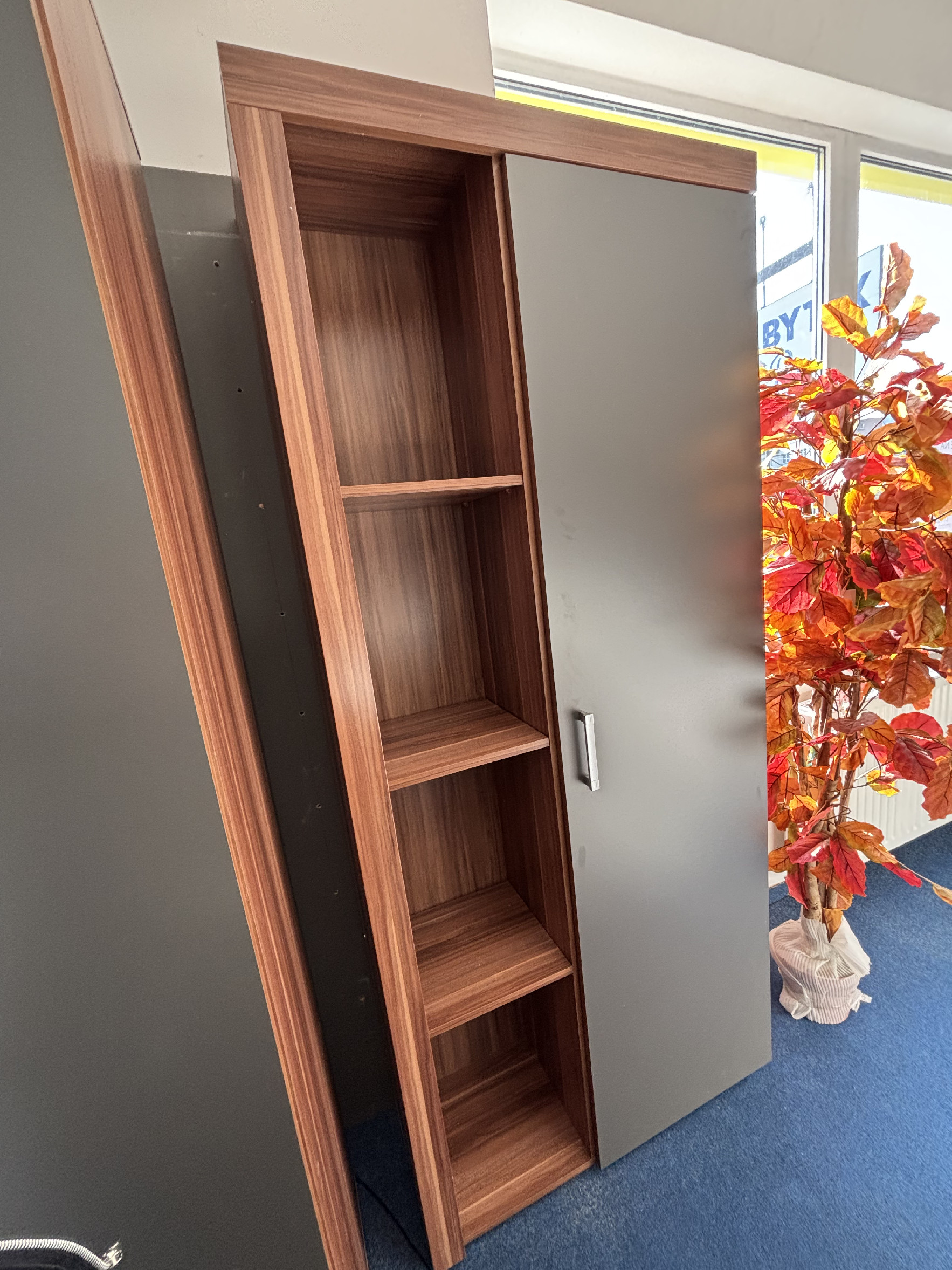 Šatní skříň P4 Barva korpusu: Lancelot, Lišta: Bílá, Barva dvířek: Šedá