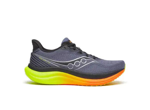 Saucony Triumph 23 jsou pánské běžecké boty navržené pro maximální pohodlí a dlouhé tréninky. Díky pěně PWRRUN PB poskytují měkký a zároveň citlivý došlap, ideální pro dlouhé běhy, a široká základna spolu s flared designem mezipodešve zajišťuje stabilitu a plynulý přechod z paty na špičku. Prodyšný engineered mesh svršek udržuje nohu v suchu a pohodlí, zatímco odolná guma XT‑900 na podrážce zajišťuje výbornou trakci a dlouhou životnost. Boty mají drop 10 mm (37 mm pata / 27 mm špička) a váží přibližně 263 g.