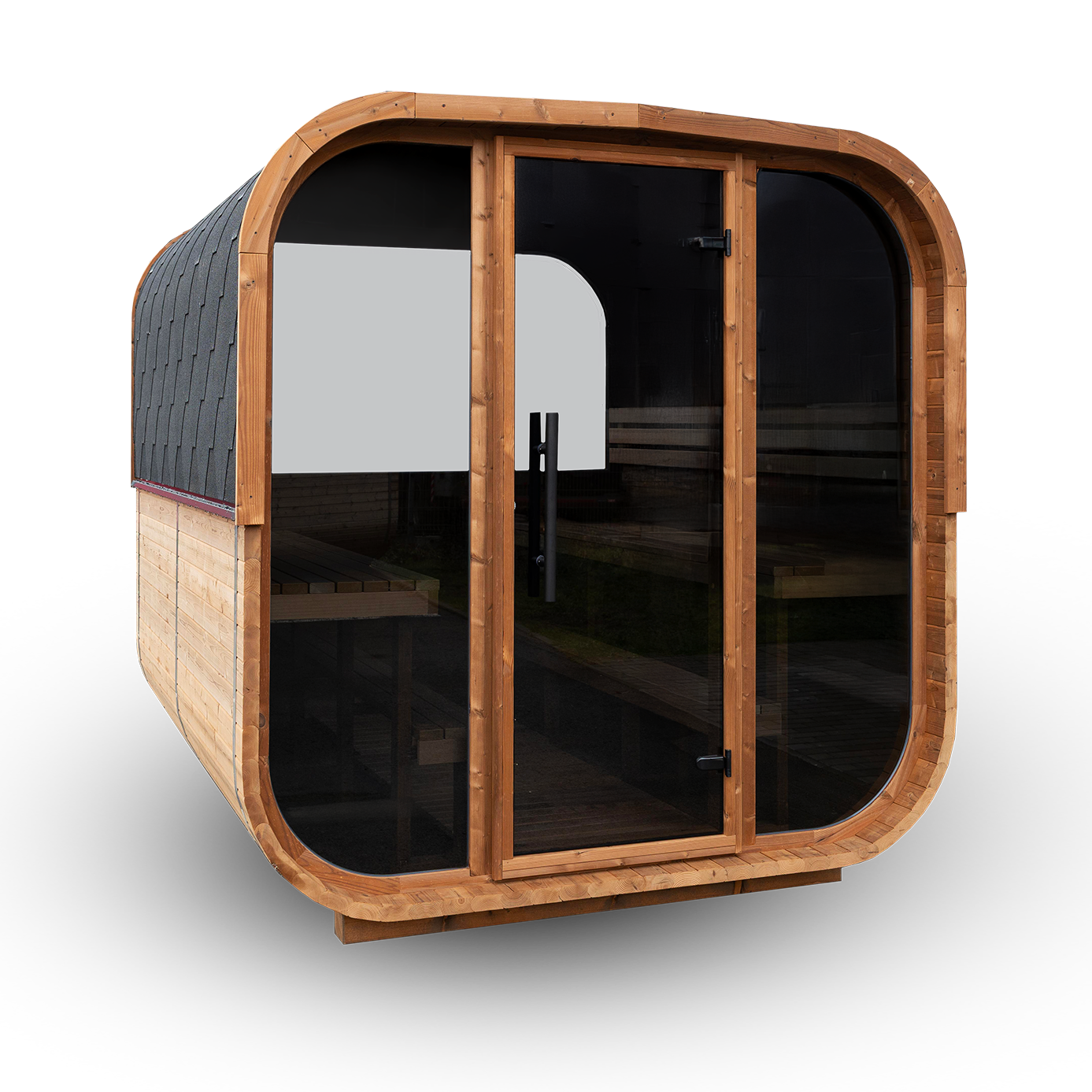 QUADRA XL je vyrobena z kvalitního ThermoWood dřeva (Thermo Pine), které je tepelně upravené pro vysokou odolnost vůči vlhkosti, deformaci a přirozenému stárnutí materiálu. Díky této úpravě si sauna dlouhodobě zachovává stabilitu, krásný vzhled i skvělé izolační vlastnosti. V praxi to znamená méně starostí s údržbou a spolehlivý provoz po celý rok.