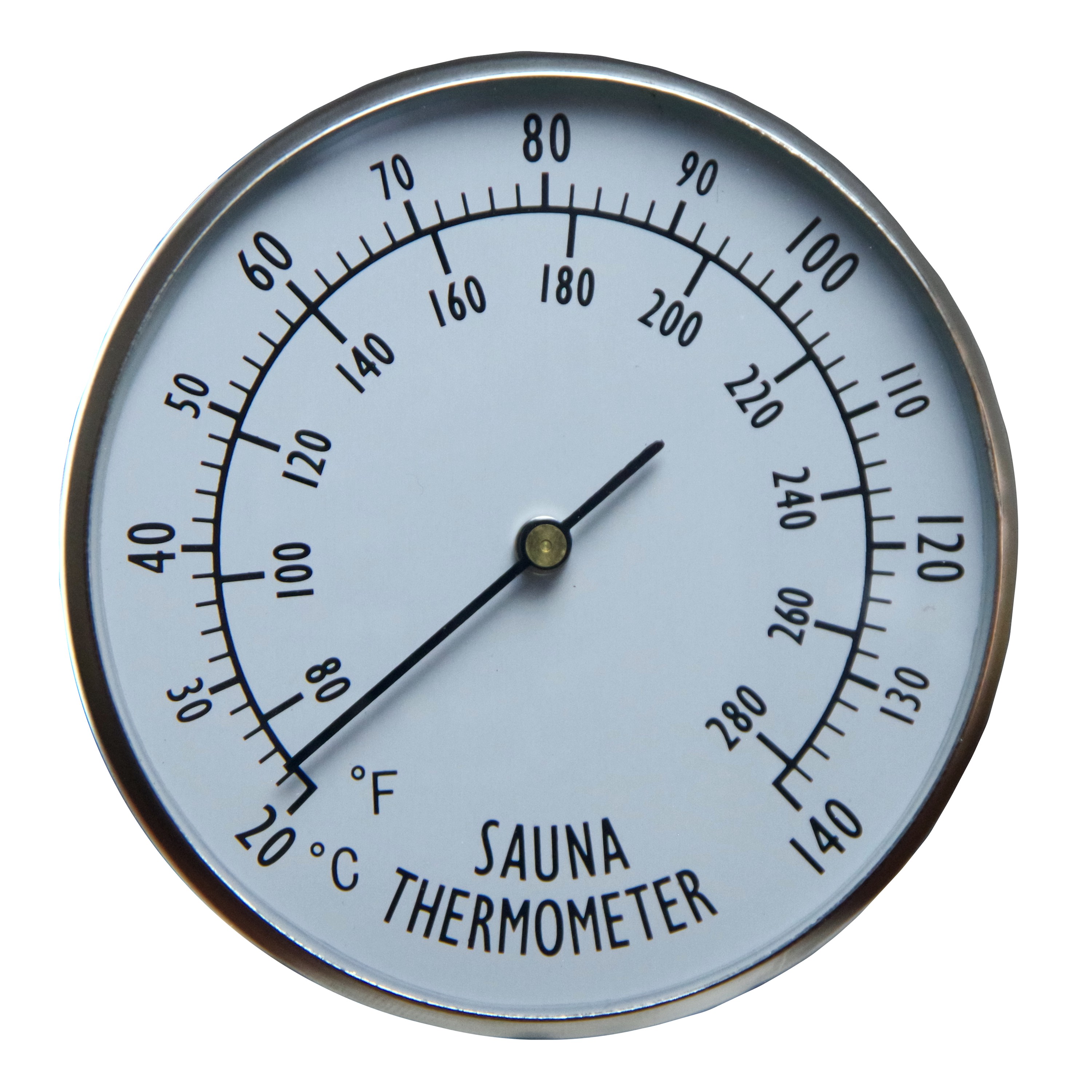 Jednoduchý a nadčasový design kovového teploměru VIKING lehce doplní každou saunu.