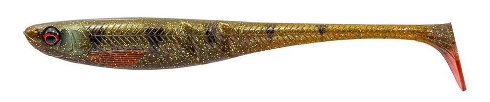 Nástraha s realistickým pohybem a rolničkou pro úspěšný lov dravců Technologie forward facing sonaru zažívá obrovský rozmach a přiměla nás vytvořit dokonalou gumovou nástrahu právě pro tento způsob lovu trofejních candátů a štik. Super měkký PVC materiál a lopatkovitý tvar ocásku umožňují pohyb už při té nejpomalejší rychlosti, kdy nástraha fantasticky rotuje a vydává dvojité kopavé pohyby. V kombinaci s hlučnou skleněnou rolničkou uvnitř těla a extrémně realistickými barvami je tato nástraha naprosto neodolatelná pro velké dravce. Speciální boční výřezy mají dvě funkce: 1. vytváří dodatečné vibrace ve vodě a především 2. při záběru se nástraha složí, takže díky jejich sklonu se ocas vždy ohne směrem dolů a nikdy se nezamotá do trojháčku – tím se výrazně zvyšuje úspěšnost záseků. Speciálně navrženo pro použití s forward facing sonarem a pelagickým chytáním Pohybuje se i při extrémně nízké rychlosti „Collapse“ design s dvojitými výřezy pro maximální úspěšnost záseku Rolující a kopavý chod Atraktivní aroma spouštějící útok 3D oči směřující dolů Dutina pro rolničku s osazenou skleněnou rolničkou Realistické lakování