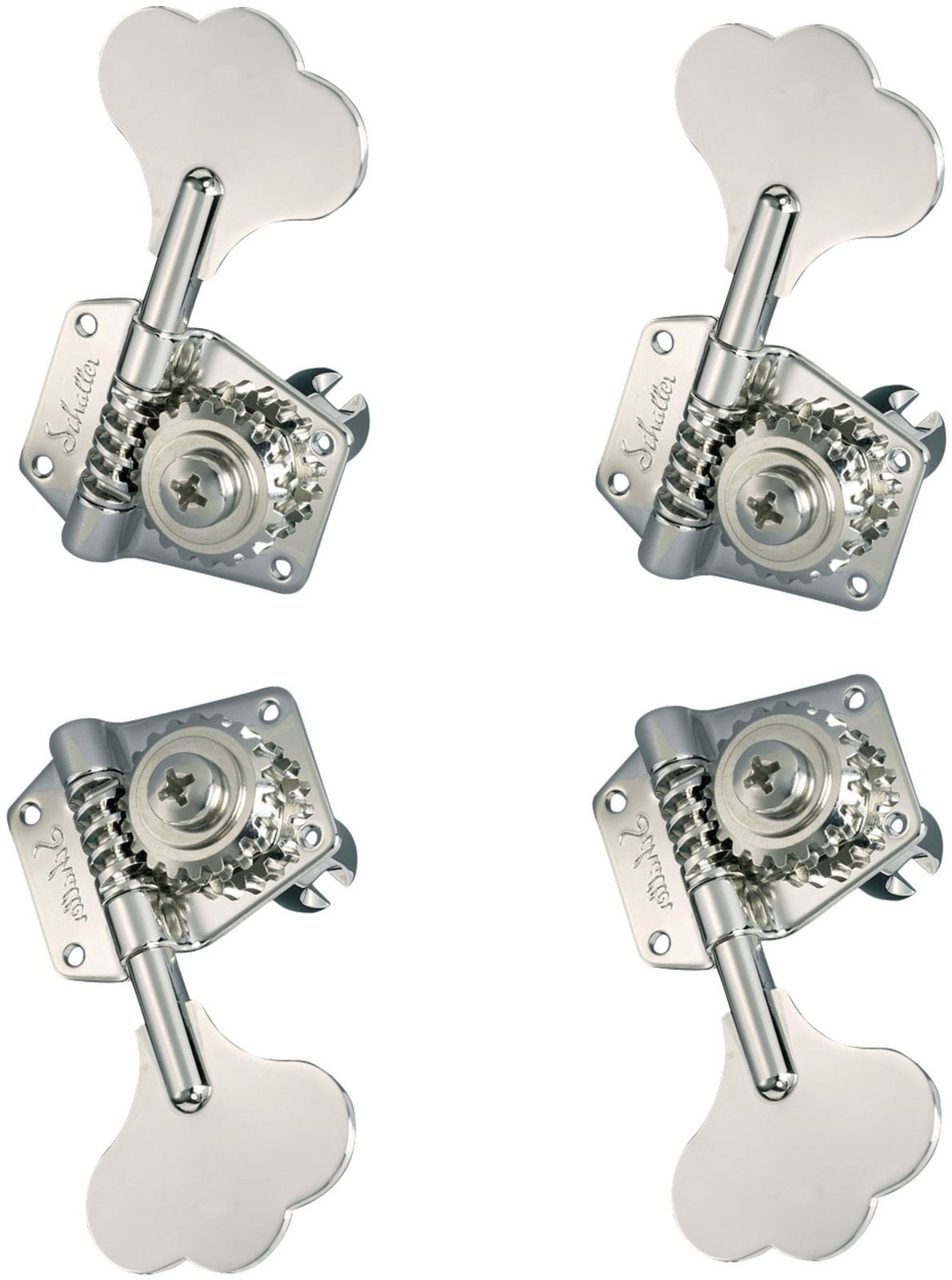 Baskytarová mechanika Tato sada čtyř baskytarových ladicích mechanik je opravdu to nejlepší, co můžete svému nástroji dopřát. Každá součástka je vyráběna z těch nejkvalitnějších materiálů a s největší možnou precizností, což vám zaručí maximálně hladké a stabilní ladění. Tento vintage-style model mechanik je vybaven precizním poměrem 1:20, samozamykacím ladicím šroubem, velice odolnými mosaznými kolíčky pro uchycení strun, či možností jednoduše měnit orientaci mechanik mezi levou a pravou stranou. Mechaniky
