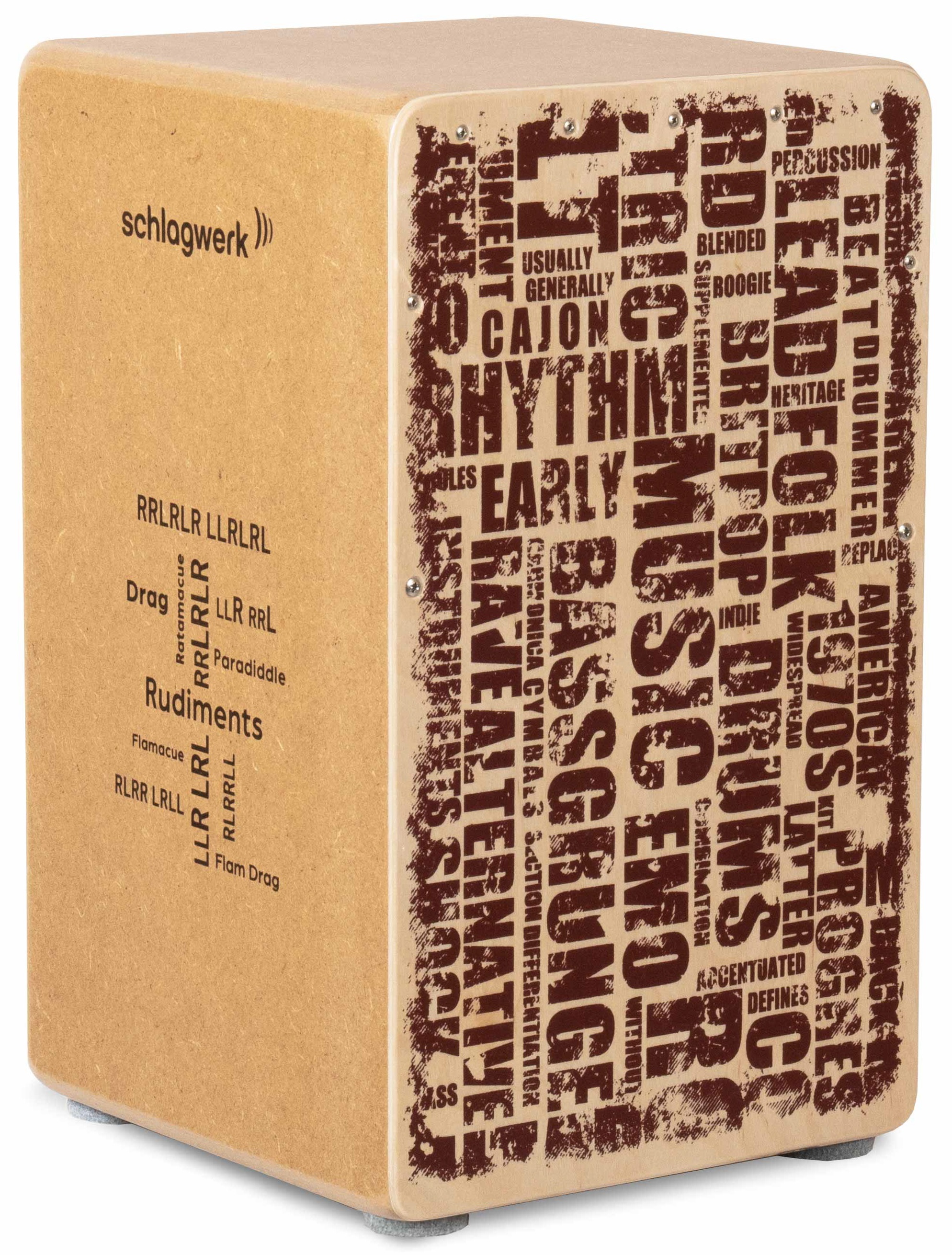Cajon Vstupní série "Rudiments" od Schlagwerk nabízí několik designových variant vedle typické ruční výroby "made in Germany". Ať už rock, alternativa, indie, blues, jazz nebo hip-hop. Neomezujte se – s tímto cajonem je možné všechno. Tento cajon nabízí hrací plochu z břízy s designovým potiskem a rezonanční box z SPL. Je vybaven 2 x 20 strunami a jeho rozměry jsou cca 30 x 30 x 50 cm. CP85 Styles se pyšní prémiovými komponenty pro nejlepší zvuk a kvalitu, a také příjemným