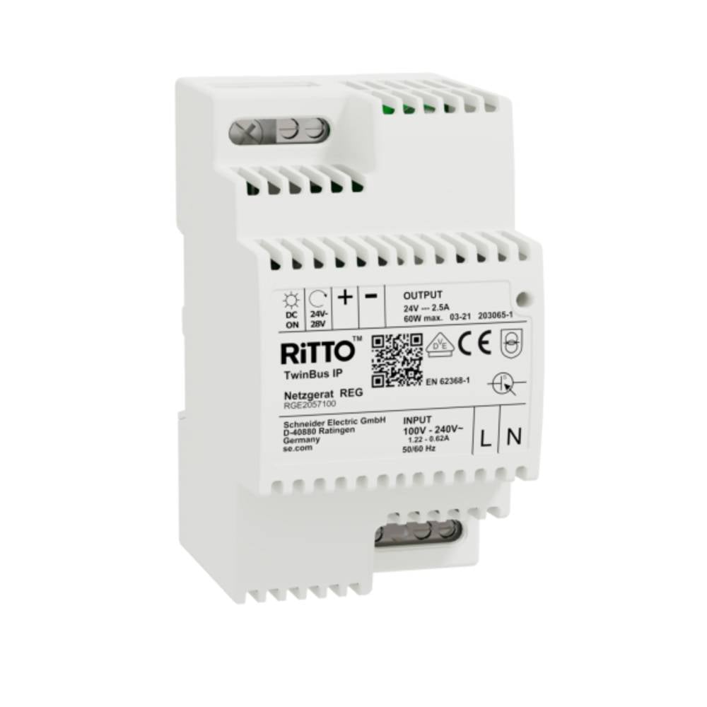 IP síťový zdroj Twinbus REG je využíván jako zdroj napětí pro systém TwinBus IP. Montáž se provádí na standardní DIN lištu TH 35/7.5 nebo TH 35/15. Šířka přístroje 3 TE (DIN), 24 v DC, 60 W. stav zaří