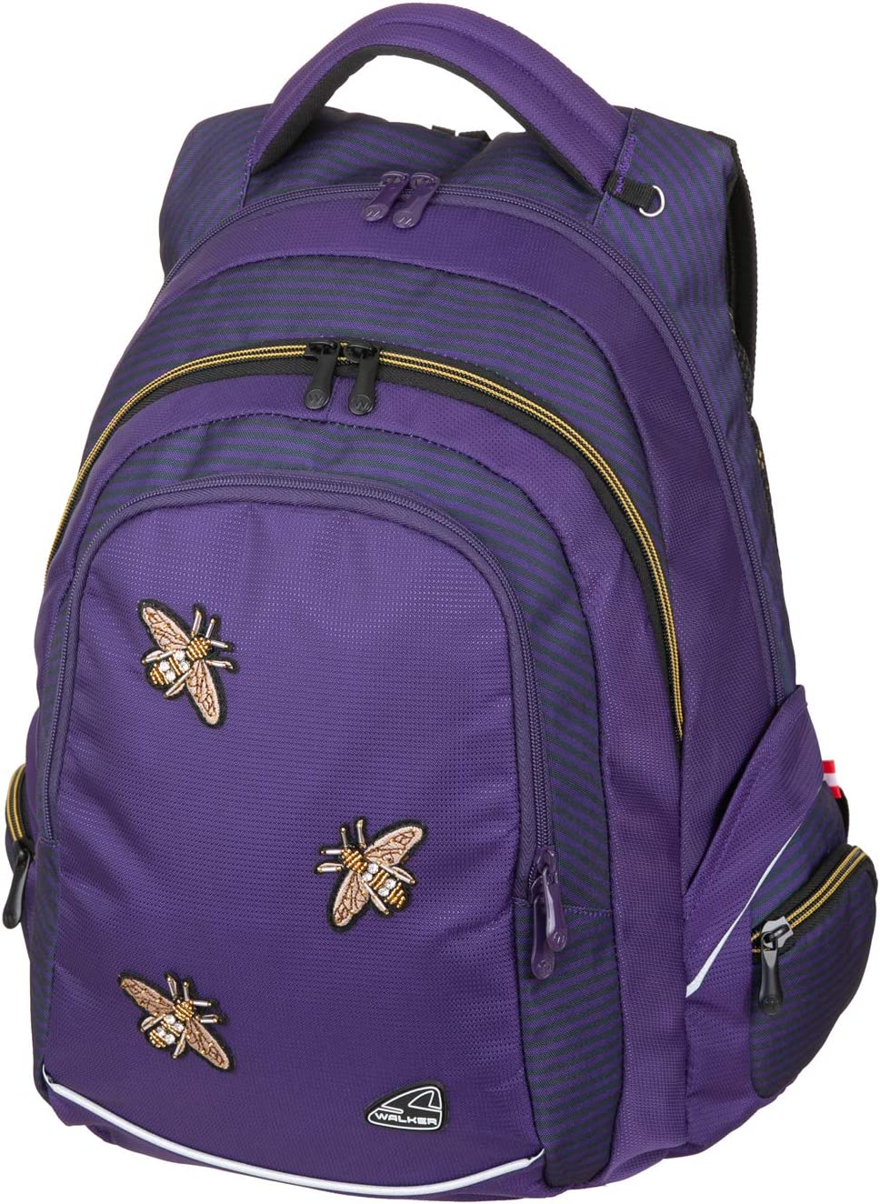 Stylový a moderní batoh v atraktivním designu, zaujme na první pohled. Tmavě fialová trendy barva s nášivkami včel, elegantně doplní outfit malých slečen. Kvalitně zpracovaný batoh má prostornou hlavní a střední komoru, součástí přední komory je všitý organizér. Boky batohu jsou opatřené prostornými kapsami, ze spodní strany je skrytá kapsa na zip. Vnitřní podšívka je z recyklovaných PET lahví. Záda batohu jsou příjemně polstrovaná. Funkčně tvarované a měkké ramenní popruhy jsou výškově nastavitelné, včetně hrudního popruhu. V horní části je měkké poutko na zavěšení. Rozměry batohu: 44 x 32 x 24 cm.