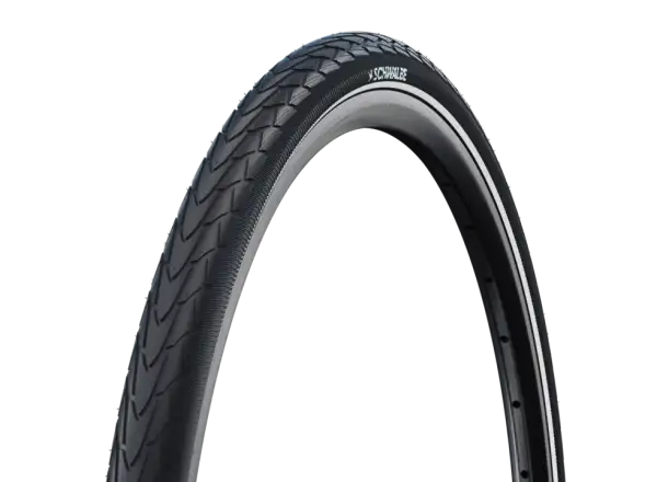Ráno do práce, odpoledne na švih po cyklostezce a o víkendu klidně delší výlet mimo město – přesně pro takové dny dává Schwalbe Marathon Racer RaceGuard 28 smysl. Působí svižně, ale zároveň umí podržet, když asfalt střídá hrubší povrch nebo se na cestě objeví nečekaný štěrk. A díky reflexním prvkům se budete cítit jistěji i při návratu za šera. Hlavní přínosy Tento trekingový plášť je postavený pro rychlé a pohodlné ježdění, kde nechcete bojovat s těžkými gumami ani dělat kompromisy v bezpečí. Ochrana proti defektu RaceGuard pomáhá snížit riziko propíchnutí v běžném provozu, takže se můžete soustředit na tempo a směr, ne na krajnici. Směs ADDIX Green je laděná na jistější ovladatelnost a stabilní záběr, což oceníte v zatáčkách i na mokřejším povrchu. Výrazný reflexní pruh zvyšuje viditelnost kola v provozu a přidává klid v hlavě při každodenním dojíždění. Technické parametry Schwalbe Marathon Racer je v rozměru 28x1.35, což odpovídá značení 700x35C a hodnotě ETRTO 35-622, tedy běžné volbě pro trekking a městská kola. Plášť je dušový a má drátovou patku, díky čemuž dobře drží tvar a sedí na ráfku při každodenním používání. Doporučený tlak je v rozsahu od 4,5 do 6,5 baru (tedy od 65 do 95 PSI), takže si snadno nastavíte kompromis mezi pohodlím a svižností. Jemnost kostry na úrovni 67 TPI pomáhá s plynulým odvalováním, přičemž hmotnost jednoho pláště je přibližně 465 g a maximální nosnost na plášť je 95 kg. Závěr Schwalbe Marathon Racer RaceGuard 28 je sportovněji laděný trekingový plášť pro cyklisty, kteří chtějí rychlou jízdu, rozumnou ochranu a dobrou kontrolu nad kolem. Hodí se na asfalt, cyklostezky i kvalitní šotolinu a díky označení E-25 je vhodný také pro elektrokola s asistencí do 25 km/h. Klíčové vlastnosti RaceGuard ochrana proti defektům pro běžný provoz ADDIX Green směs pro jistější ovladatelnost Reflexní pruh pro lepší viditelnost ve tmě Rozměr 28x1.35 (ETRTO 35-622) Vhodné i pro e-bike s doporučením E-25