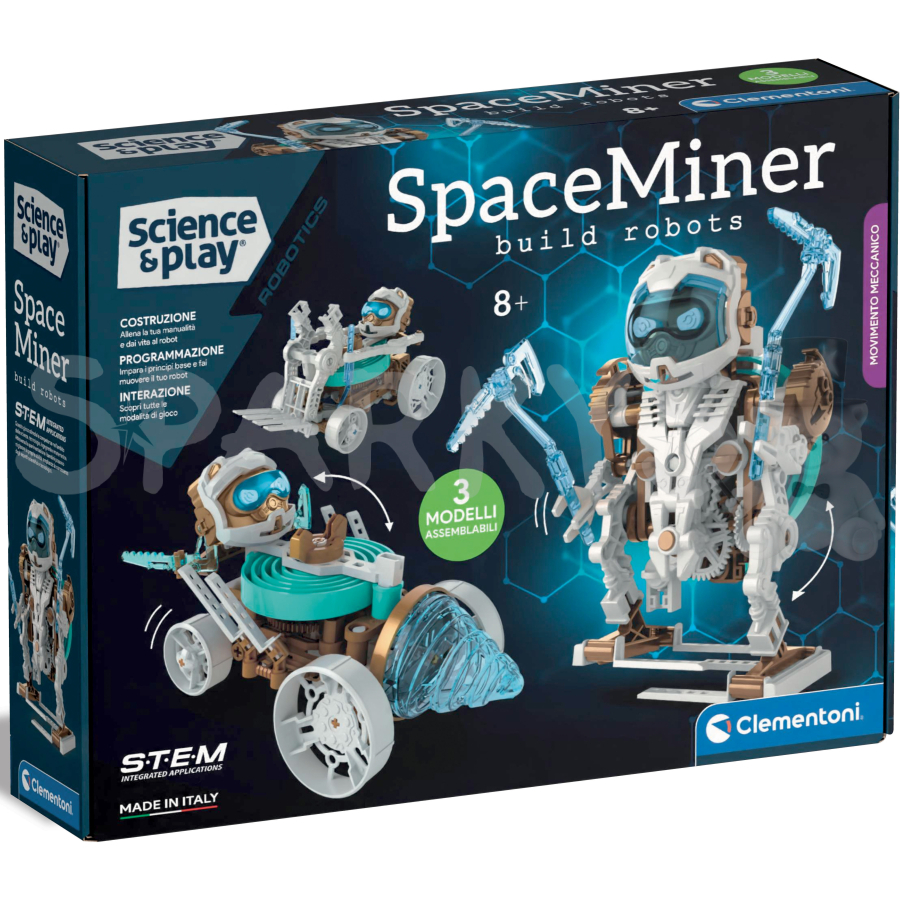 Nová sada o robotice k objevování neprozkoumaných světů a setkání s novými druhy. Součástí jsou 3 modely, které lze sestavit jeden po druhém, abyste se naučili principy robotiky. Humanoidní robot s krumpáči, humanoidní robot na buldozeru a humanoidní robot s vrtačkou. Roboti mohou zkoumat, kopat a odhalovat tajemství z nových světů. Snadno sestavitelné, vybavené pružinovým mechanismem. Navrženo a vyrobeno v Itálii. Rozměr balení: 38,5 x 28,5 x 7,8 cm Věk: 8+