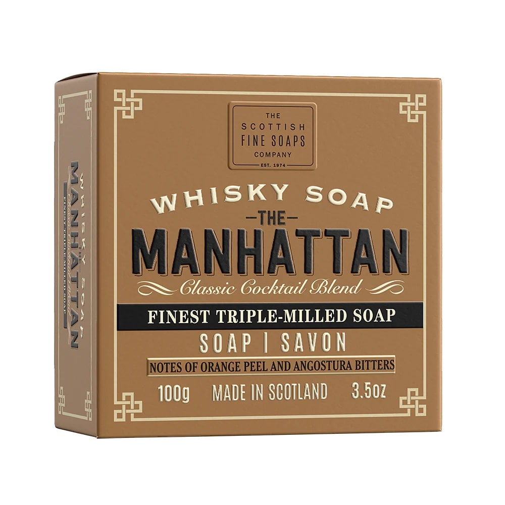Přírodní, třikrát jemně mleté mýdlo od Scottish Fine Soaps, The Manhattan, je navrženo přesně pro vás! Jemně myje a pokožce propůjčí mužnou vůni inspirovanou drinkem Manhattan.