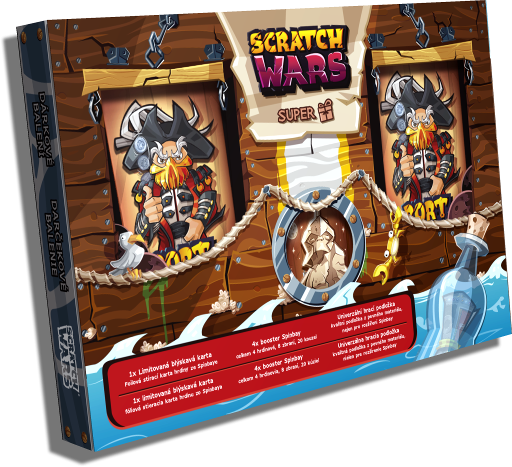 Zbrusu nová edice Scratch Wars! Mlha se nerozplynula nad novou „landií“, ale nad přístavem Spinbay. Kromě přístavních hrdinů a zbraní v této edici najdeš i 44 karet kouzel, které se v přístavech na Overcorneru běžně prodávají jako třeba buchtoláče či trollí pazourky. Kouzla do hry přináší úplně čerstvé herní mechaniky. V duchu Scratch Wars jsou i kouzla stejného druhu různě vzácná. Najdeš ty nejmocnější? Vymyslíš ty správné kombinace? Kromě kouzel v balení najdeš i super podložku, která dokonale zpřehlední hraní a nechybí ani blýskavá karta do tvé sbírky.