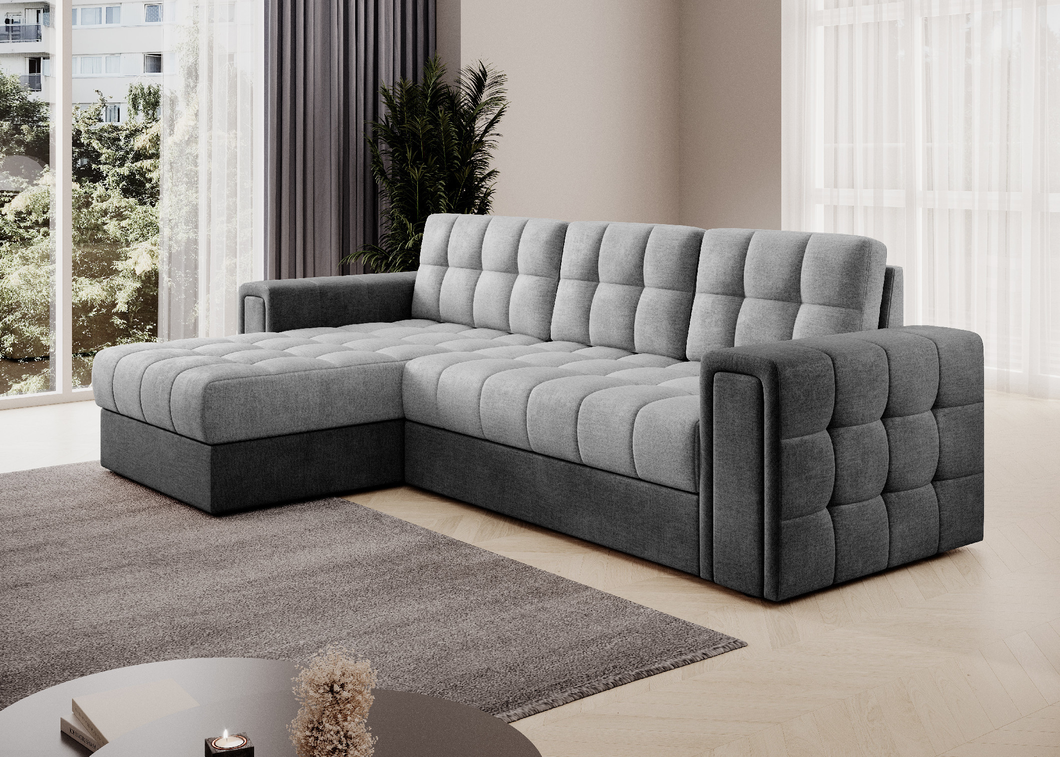 Sedací souprava Blenvi Rohová sedací souprava Blenvi je moderní s univerzálním rohem, kdy si sami zvolíte stranu sedací soupravy. Stylový design v moderní estetice dokonale zapadne do různých interiérů vašeho domova, ale i do společenských prostor. Sedací souprava Blenvi navíc disponuje úložným prostorem a rozkladem pro příležitostné přespání.  • Vlastnosti Kostra ze dřeva a dřevotřískové deskyNa výplň jsou použity pružiny Faliste spolu s pěnou T2540Sedací souprava je univerzální - stranu si vyberete podle návodu při montážiÚložný prostor v otomanuRozklad pro příležitostné přespáníČalouněná záda • Úložný prostor Rozkládací plocha pro příležitostné spaní Prošívané područky Volné opěrné polštáře • Rozměry 260 cm celková šířka 82 cm  výška s opěrkami hlavy 150 cm celková hloubka 123x212 cm plocha na spaní 80 cm šířka otomanu 56 cm hloubka sedáku 42 cm výška sedu 24 cm šířka loketní opěrky 2,5 cm výška nožek Počet kusů sedací soupravy Blenvi1. 150 x 80 x 85 cm - cca 50 kg2. 132 x 90 x 85 cm - cca 40 kgJedná se o odhadované rozměry + - 5 cm / kg s ohledem na balení daného kusu.Podrobné instruktážní návodyv odkazu níže ke stažení↓↓↓>>   Montážní návod pro levou variantu   Montážní návod pro pravou variantu
