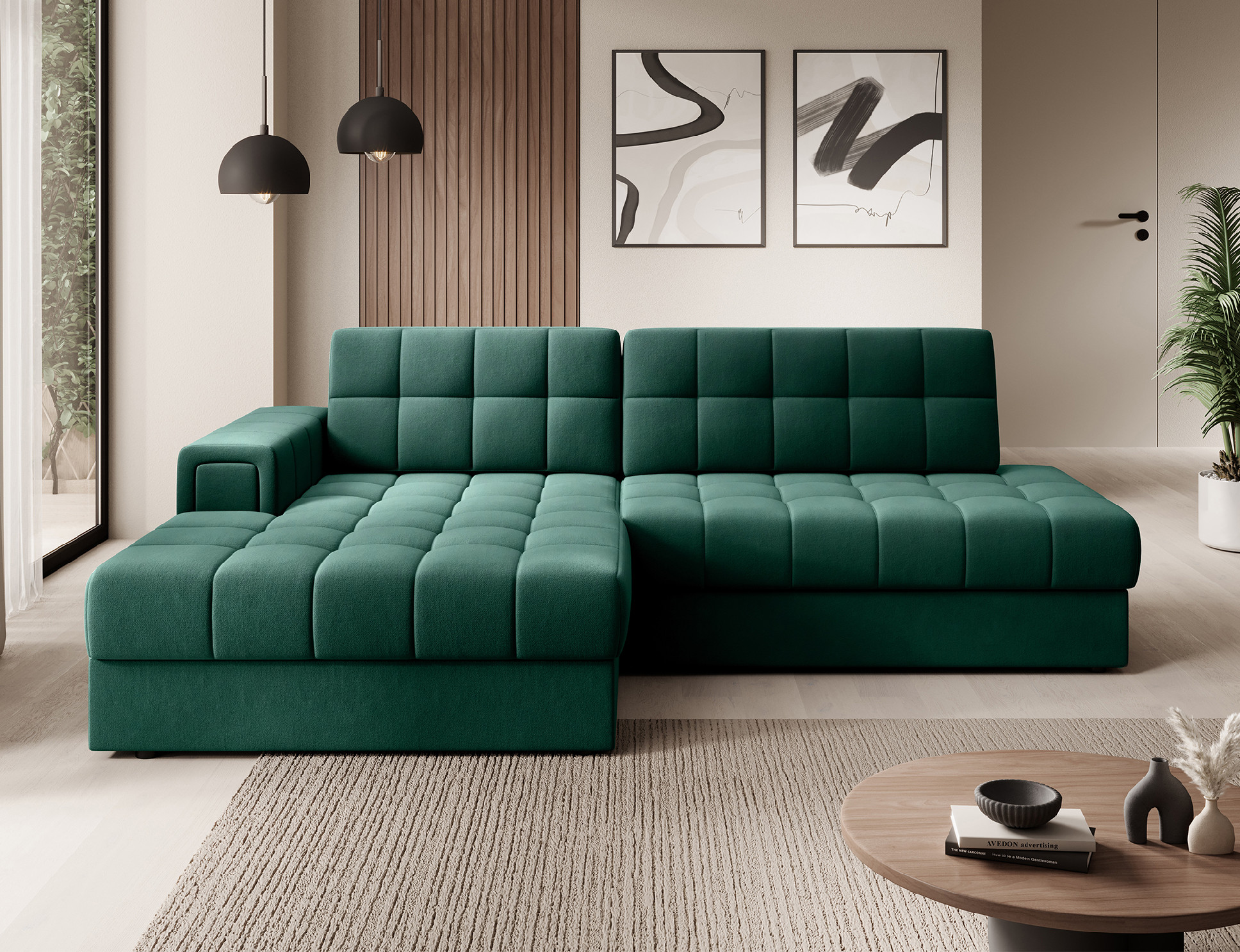 Sedací souprava Blezalt Rohová sedací souprava Blezalt je kombinací moderního designu, funkčností a pohodlí. Sedací souprava je ideální do obývacího pokoje v moderním stylu a nabízí pohodlí po mnoho let. Sedací souprava Blenvi navíc disponuje úložným prostorem a rozkladem pro příležitostné přespání. • Vlastnosti Kostra ze dřeva a dřevotřískové deskyNa výplň jsou použity pružiny Faliste spolu s pěnou T2540Úložný prostor v otomanuRozklad pro příležitostné přespáníČalouněná záda • Úložný prostor Rozkládací plocha pro příležitostné spaní Prošívaný sedák Prošívání opěrných polštářů • Rozměry 240 cm celková šířka 82 cm výška s opěrkami hlavy 150 cm celková hloubka 124 x 215 cm plocha na spaní 107 cm šířka otomanu 56 cm hloubka sedáku 42 cm výška sedu 2,5 cm výška nožek Počet kusů sedací soupravy Blezalt1. 150 x 108 x 82 cm - cca 60 kg2. 136 x 90 x 85 cm - cca 50 kgJedná se o odhadované rozměry + - 5 cm / kg s ohledem na balení daného kusu.Podrobné instruktážní návodyv odkazu níže ke stažení↓↓↓>> Montážní návod