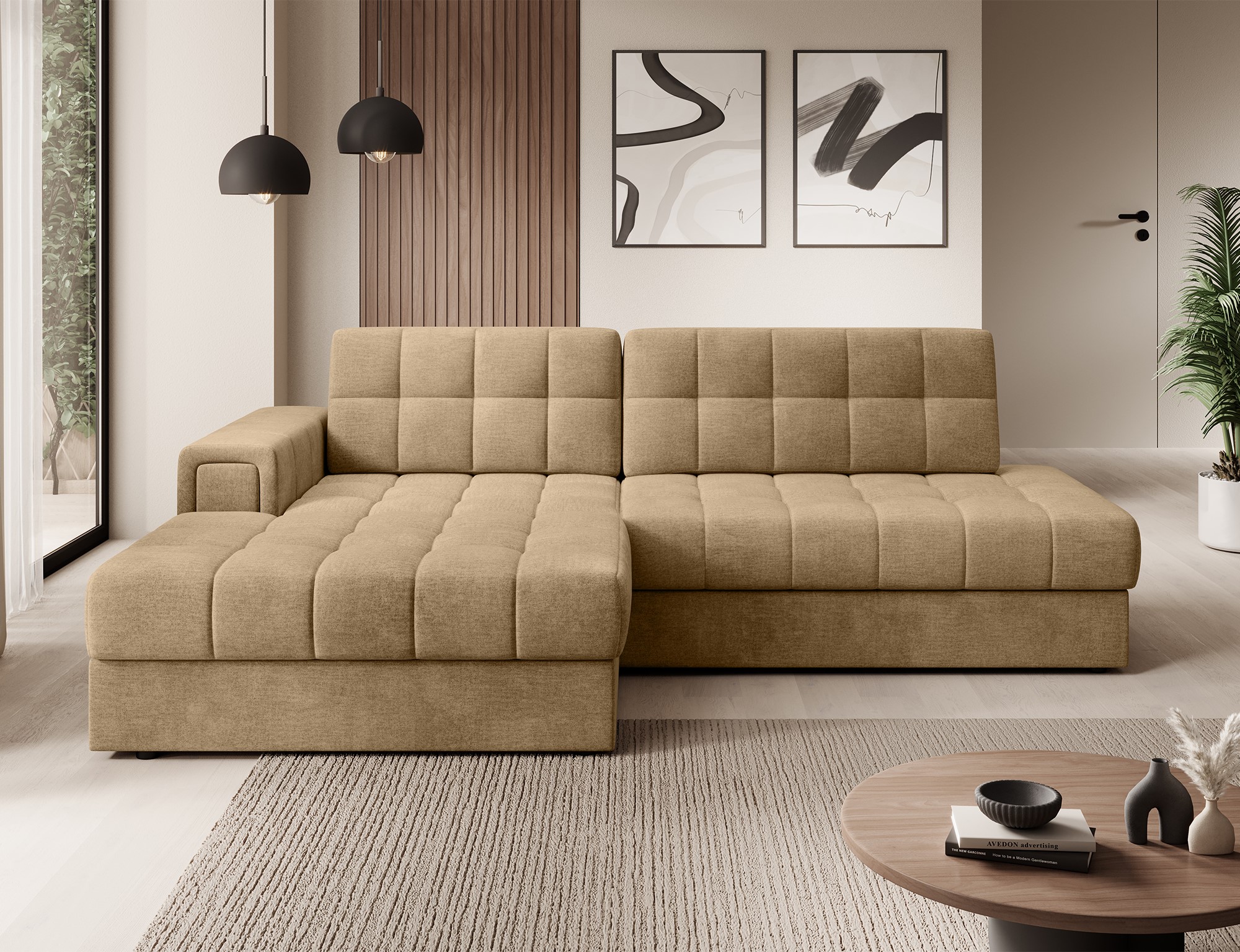 Sedací souprava Blezalt Rohová sedací souprava Blezalt je kombinací moderního designu, funkčností a pohodlí. Sedací souprava je ideální do obývacího pokoje v moderním stylu a nabízí pohodlí po mnoho let. Sedací souprava Blenvi navíc disponuje úložným prostorem a rozkladem pro příležitostné přespání. • Vlastnosti Kostra ze dřeva a dřevotřískové deskyNa výplň jsou použity pružiny Faliste spolu s pěnou T2540Úložný prostor v otomanuRozklad pro příležitostné přespáníČalouněná záda • Úložný prostor Rozkládací plocha pro příležitostné spaní Prošívaný sedák Prošívání opěrných polštářů • Rozměry 240 cm celková šířka 82 cm výška s opěrkami hlavy 150 cm celková hloubka 124 x 215 cm plocha na spaní 107 cm šířka otomanu 56 cm hloubka sedáku 42 cm výška sedu 2,5 cm výška nožek Počet kusů sedací soupravy Blezalt1. 150 x 108 x 82 cm - cca 60 kg2. 136 x 90 x 85 cm - cca 50 kgJedná se o odhadované rozměry + - 5 cm / kg s ohledem na balení daného kusu.Podrobné instruktážní návodyv odkazu níže ke stažení↓↓↓>> Montážní návod