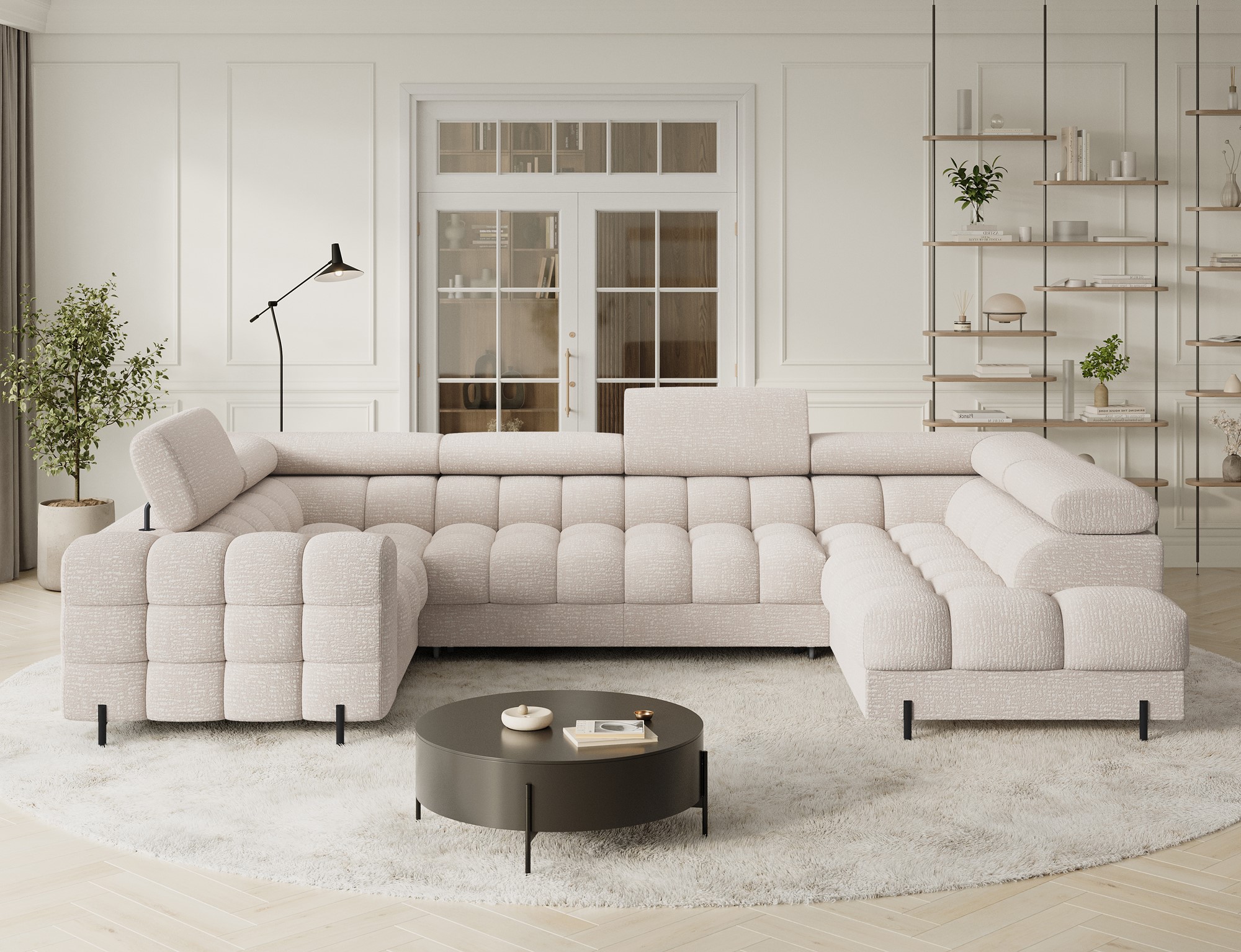 Sedací souprava Fectory Rohová pohovka Fectory v moderním stylu je dokonalou kombinací funkčnosti a estetiky. Na výplň jsou použity kvalitní materiály, které zajistí pohodlné posezení a příležitostné spaní. Díky čalouněným zádům lze sedací soupravu umístit do volného prostoru v obývacím pokoji. Celý dojem je podtržen elegantními černými kovovými nožičkami, které dodávají sedačce lehkost a moderní charakter. • Úložný prostor Rozkládací plocha pro příležitostné přespání • Vlastnosti Kostra ze dřeva a dřevotřískové deskyNa výplň jsou použity pružiny Faliste typu B spolu s pěnou T3030 a HR3030Výběr strany při objednáníÚložný prostor v otomanuRozklad pro příležitostné přespáníČalouněná zádaKovové černé nohy • Varianta strany sedací soupravy Levá U Pravá U • Rozměry 346 cm celková šířka 93 cm výška se zvednutými opěrkami hlavy 73 cm výška s položenými opěrkami hlavy 205 cm celková hloubka delšího otomanu 202 cm celková hloubka kratšího otomanu 123 x 247 cm plocha na spaní 100 cm šířka delšího otomanu 102 cm šířka kratšího otomanu 53 cm hloubka sedáku 44 cm výška sedu 9 / 14 cm výška nožek Počet kusů sedací soupravy Fectory1. 208 x 103 x 70 cm - cca 80 kg2. 145 x 103 x 70 cm - cca 70 kg3. 205 x 100 x 70 cm - cca 80 kgJedná se o odhadované rozměry + - 5 cm / kg s ohledem na balení daného kusu.Podrobné instruktážní návodyv odkazu níže ke stažení↓↓↓>> Montážní návod