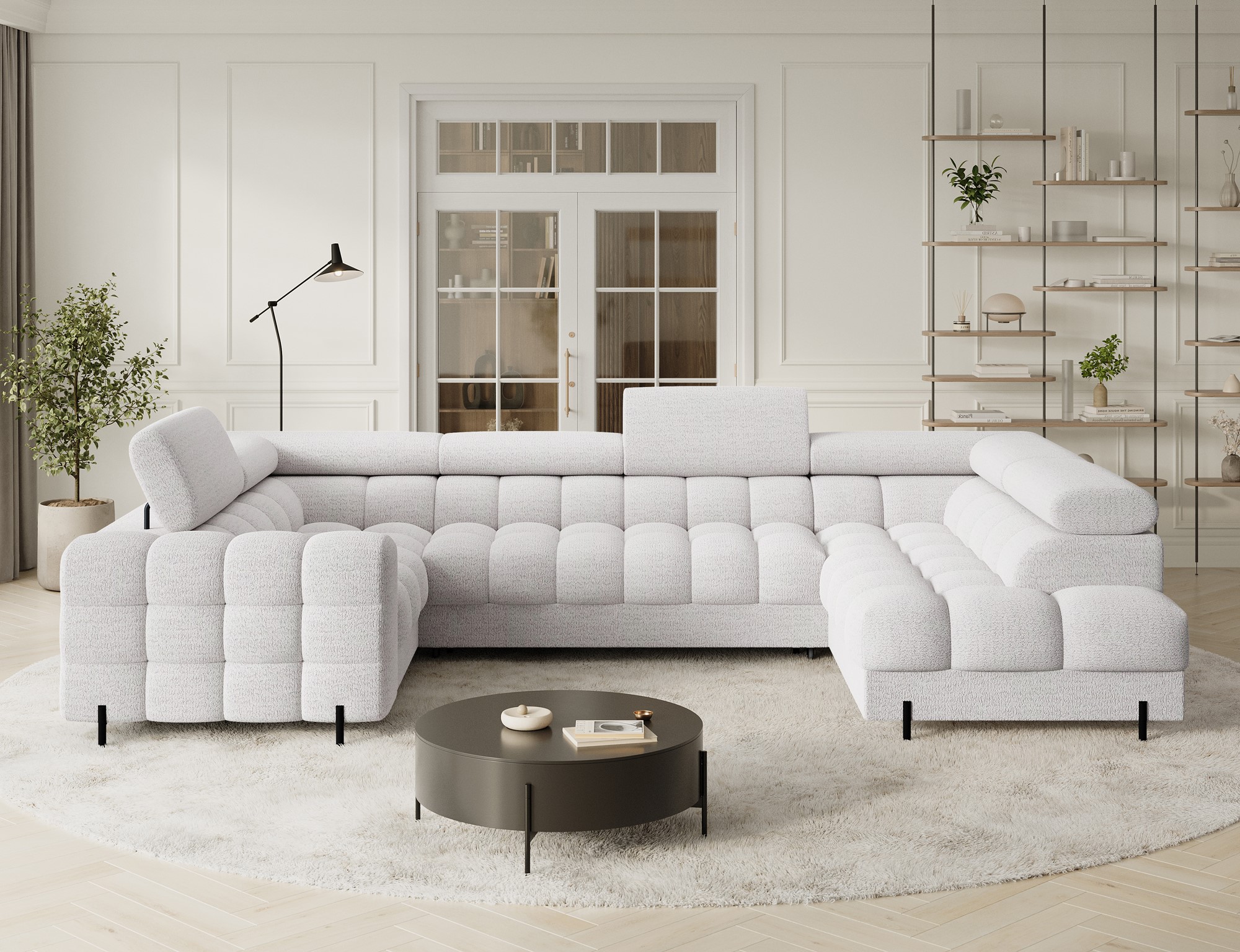 Sedací souprava Fectory Rohová pohovka Fectory v moderním stylu je dokonalou kombinací funkčnosti a estetiky. Na výplň jsou použity kvalitní materiály, které zajistí pohodlné posezení a příležitostné spaní. Díky čalouněným zádům lze sedací soupravu umístit do volného prostoru v obývacím pokoji. Celý dojem je podtržen elegantními černými kovovými nožičkami, které dodávají sedačce lehkost a moderní charakter.  • Úložný prostor Rozkládací plocha pro příležitostné přespání • Vlastnosti Kostra ze dřeva a dřevotřískové deskyNa výplň jsou použity pružiny Faliste typu B spolu s pěnou T3030 a HR3030Výběr strany při objednáníÚložný prostor v otomanuRozklad pro příležitostné přespáníČalouněná zádaKovové černé nohy • Varianta strany sedací soupravy Levá U Pravá U • Rozměry 346 cm celková šířka 93 cm  výška se zvednutými opěrkami hlavy 73 cm  výška s položenými opěrkami hlavy 205 cm celková hloubka delšího otomanu 202 cm celková hloubka kratšího otomanu 123 x 247 cm plocha na spaní 100 cm šířka delšího otomanu 102 cm šířka kratšího otomanu 53 cm hloubka sedáku 44 cm výška sedu 9 / 14 cm výška nožek Počet kusů sedací soupravy Fectory1. 208 x 103 x 70 cm - cca 80 kg2. 145 x 103 x 70 cm - cca 70 kg3. 205 x 100 x 70 cm - cca 80 kgJedná se o odhadované rozměry + - 5 cm / kg s ohledem na balení daného kusu.Podrobné instruktážní návodyv odkazu níže ke stažení↓↓↓>>  Montážní návod