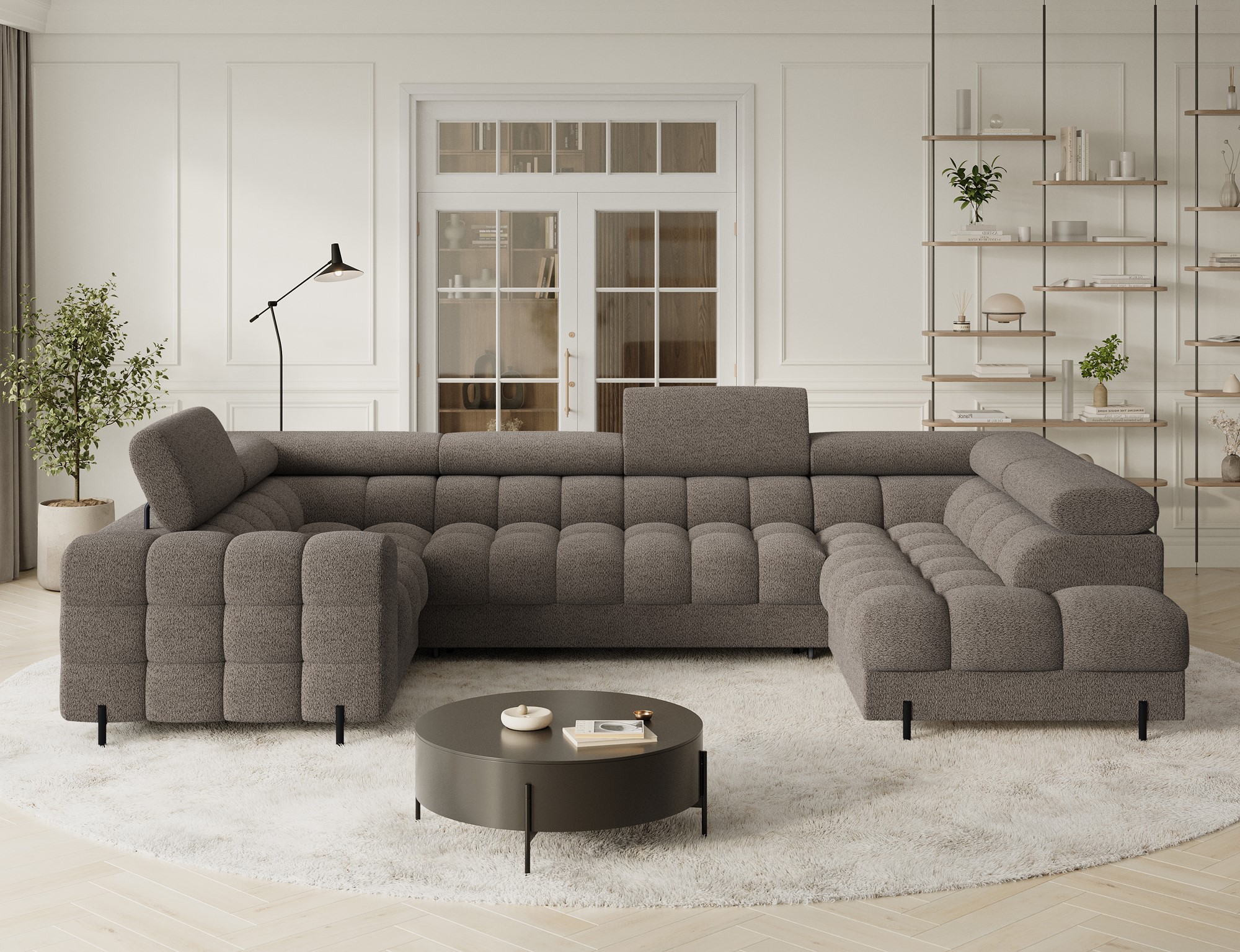 Sedací souprava Fectory Rohová pohovka Fectory v moderním stylu je dokonalou kombinací funkčnosti a estetiky. Na výplň jsou použity kvalitní materiály, které zajistí pohodlné posezení a příležitostné spaní. Díky čalouněným zádům lze sedací soupravu umístit do volného prostoru v obývacím pokoji. Celý dojem je podtržen elegantními černými kovovými nožičkami, které dodávají sedačce lehkost a moderní charakter.  • Úložný prostor Rozkládací plocha pro příležitostné přespání • Vlastnosti Kostra ze dřeva a dřevotřískové deskyNa výplň jsou použity pružiny Faliste typu B spolu s pěnou T3030 a HR3030Výběr strany při objednáníÚložný prostor v otomanuRozklad pro příležitostné přespáníČalouněná zádaKovové černé nohy • Varianta strany sedací soupravy Levá U Pravá U • Rozměry 346 cm celková šířka 93 cm  výška se zvednutými opěrkami hlavy 73 cm  výška s položenými opěrkami hlavy 205 cm celková hloubka delšího otomanu 202 cm celková hloubka kratšího otomanu 123 x 247 cm plocha na spaní 100 cm šířka delšího otomanu 102 cm šířka kratšího otomanu 53 cm hloubka sedáku 44 cm výška sedu 9 / 14 cm výška nožek Počet kusů sedací soupravy Fectory1. 208 x 103 x 70 cm - cca 80 kg2. 145 x 103 x 70 cm - cca 70 kg3. 205 x 100 x 70 cm - cca 80 kgJedná se o odhadované rozměry + - 5 cm / kg s ohledem na balení daného kusu.Podrobné instruktážní návodyv odkazu níže ke stažení↓↓↓>>  Montážní návod