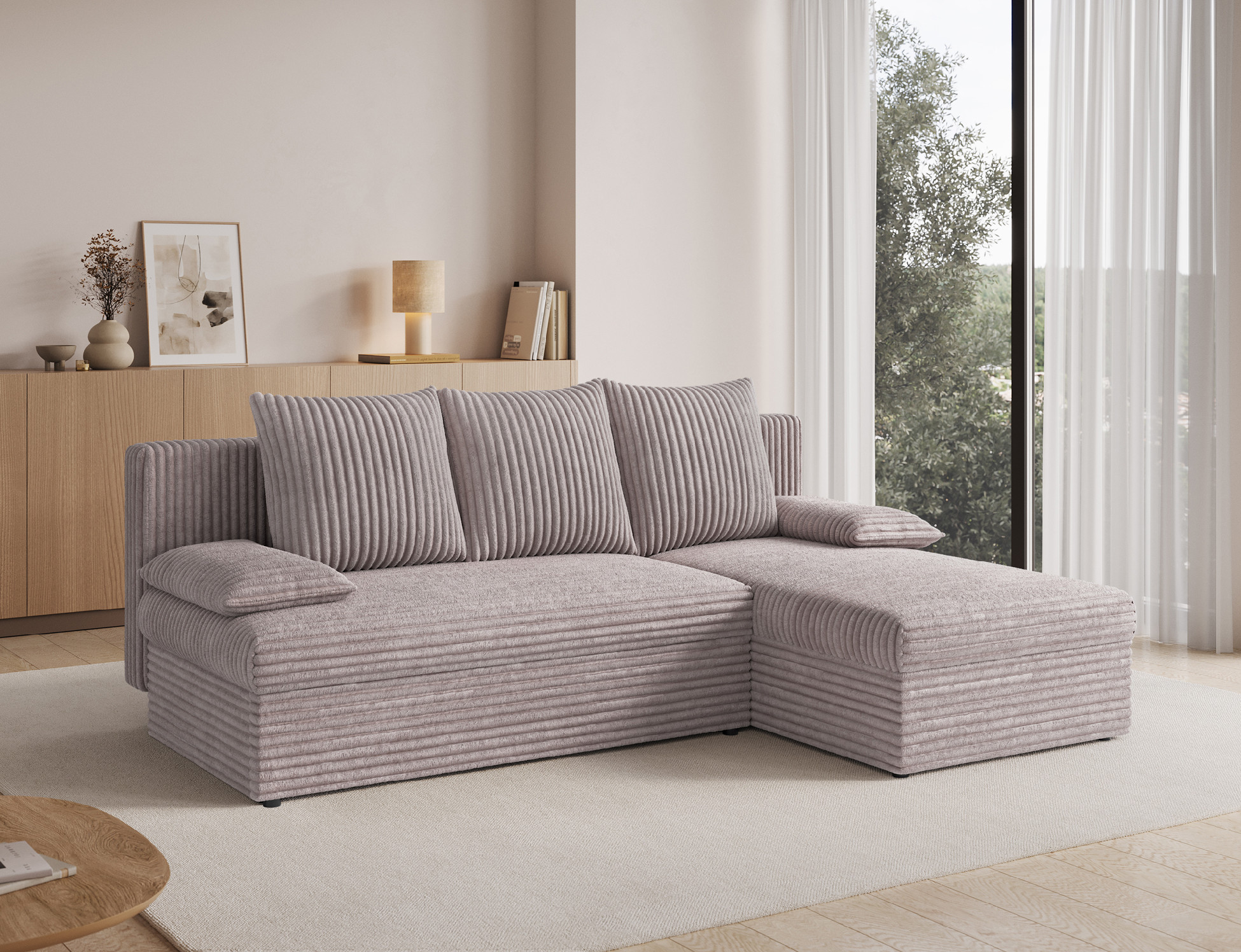 Sedací souprava Gino Sedací souprava Gino představuje ideální volbu pro ty, kdo hledají kompaktní, ale funkční nábytek. Díky své malé velikosti se skvěle hodí nejen do obývacího pokoje, ale i do dětského pokoje nebo pokoje pro hosty. Její univerzální roh umožňuje snadné začlenění do jakéhokoli uspořádání místnosti. Navíc nabízí praktický úložný prostor a možnost rozložení, což z ní dělá perfektní kombinaci pohodlí a funkčnosti.Pět volných polštářů, tři větší na opěr a dva menší jako područky.  • Čalouněná záda Sedací souprava Gino může stát i v prostoru. Univerzální roh Lze libovolně přemisťovat z jedné strany na druhou.  • Vlastnosti Čalouněná zádaTvar do písmene LRozkládací plocha na spaníÚložný prostorKvalitní HR pěnaVlnitá pružina typu FalisteUniverzální roh Rozklad na pohodlné lůžko Praktický úložný prostor • Rozměry 201 cm celková šířka 90 cm  výška s opěrkami hlavy 143 cm celková hloubka 124x201 cm plocha na spaní 54/75 cm hloubka sedáku 35 cm výška sedu 30 cm šířka loketní opěrky Počet kusů sedací soupravy 1. 140x60x80 cm - cca 40 kg2. 150x70x80 cm - cca 80 kgJedná se o odhadované rozměry + - 5 cm / kg s ohledem na balení daného kusu.Podrobný instruktážní návod v odkazu níže ke stažení↓↓↓>>   Montážní návod