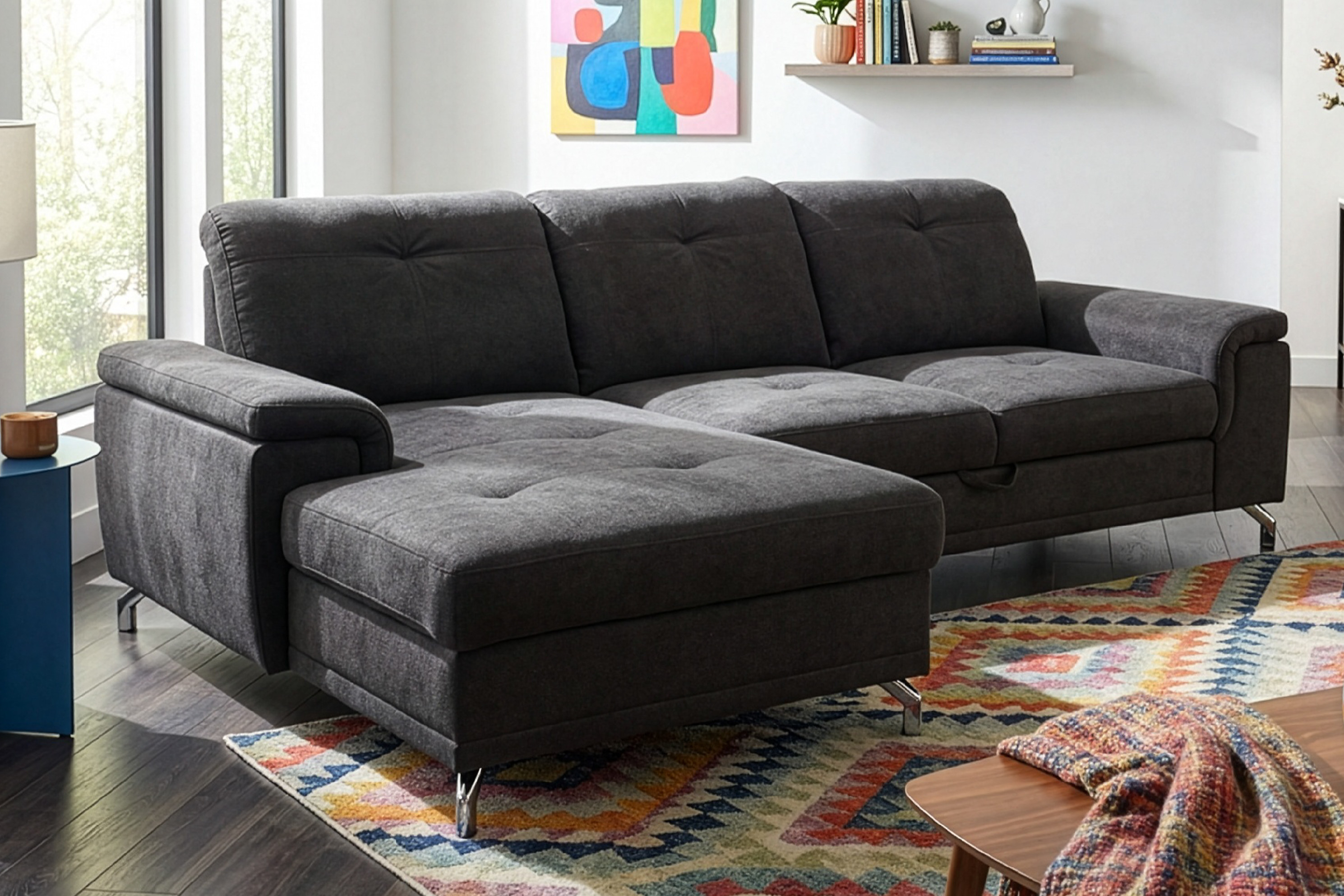Sedací souprava Hespe Klasický vzhled sedací soupravy Hespe je doplněn o výrazný prvek a to o posuvná záda. Díky nim si nastavíte hloubku sedáku. Další výhodou je úložný prostor a možnost rozkladu pro příležitostné spaní. • Vlastnosti sedací soupravy Hespe Kostra sedací soupravy Kostra sedací soupravy je vyrobena z měkkého a tvrdého dřeva. Výplň sedáků a opěradel Na výplň jsou použity pružiny Faliste a PUR pěna. Opěrky hlavy Polohovatelné opěrky hlavy. Posuvná opěrná záda Výhodou sedací soupravy jsou posuvná záda, díky kterým si každý najde to přesné místo k sezení. Úložný prostor Součástí otomanu je úložný prostor k úschově například lůžkovin. Rozkládací plocha Sedací soupravu lze rozložit a vytvoří se tak plocha pro příležitostné spaní. Nožičky Sedací souprava stojí na kovových nožičkách. Čalouněná záda Díky čalouněným zádům sedací soupravu můžete umístit i do prostoru.  • Kódy variant pro sedací soupravu HespeLevá variantaPravá variantaOSL + 2FBP2FBL + OSP • Úložný prostorNedílnou součástí sedací soupravy je prostorný úložný prostor nacházející se v otomanu (prodlouženém rohu sedačky). Prostor je vhodný pro uskladnění lůžkovin. Vnitřek je z bílé, z lehce omyvatelné desky. Úložný prostor se otevře zvednutím sedací části otomanu.Rozkládací plochaRozkládací ložná plocha je příjemná při denním odpočinku, ale je vhodná i na příležitostné přespávání. Rozklad je čalouněný. Sedačka se rozloží snadným vysunutím rozkládací plochy z pod sedákuPosuvná zádaVýhodou sedací soupravy Hespe jsou její posuvná. Jednoduchým nadzvednutím nahoru a následně k sobě, záda posunete dopředu. Díky tomu si nastavíte jednu ze dvou variant sedu. • Rozměry 272 cm celková šířka 89 cm  výška se sklopenými opěrkami hlavy 107 cm  výška se zvednutými opěrkami hlavy 170 cm celková hloubka 134 x 215 cm plocha na spaní 137 x 74 x 17,5 cm úložný prostor 110 cm šířka otomanu 58 / 70 cm hloubka sedáku 46 cm výška sedu 26 cm šířka loketní opěrky 11,5 cm výška nožek Počet kusů sedací soupravy Hespe1. 145 x 95 x 110 cm2. 110 x 95 x 175 cmJedná se o odhadované rozměry + - 5 cm / kg s ohledem na balení daného kusu. • Potahová látka CastelLátka CASTEL je kvalitní potahová látka, která je ze 100% z polyesternu. Na dotek se jedná o sametovou látku, která je příjemná na dotek a na pohled se lehce leskne.Ošetření látky Easy Clean zajistí, že tekutiny a nečistoty neproniknou do struktury látky a zůstávají v podobě malých kapiček na povrchu. Kompletní vzorník látky Castel Castel 3 Castel 15 Castel 34 Castel 48 Catsel 59 Castel 74 Castel 91 Castel 97 • UpozorněníLátky prezentované na fotografiích jsou ilustračním materiálem, barvy se mohou lišit od vyobrazení na fotografiích podle nastavení vašeho zobrazovacího zařízení.