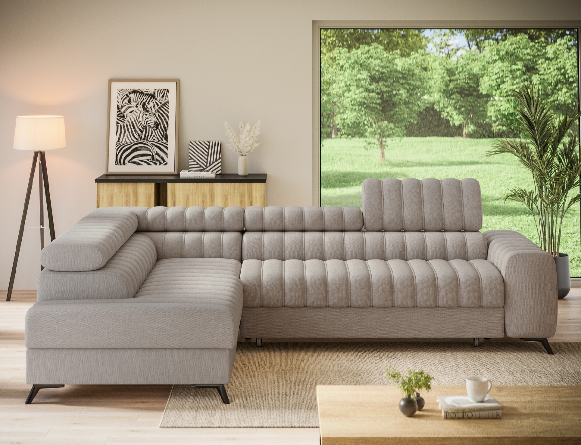 Sedací souprava Kanedo Rohová sedací souprava Kanedo je kombinací moderního vzhledu a vysokého komfortu. Sedací souprava se pyšní pevnou konstrukcí a tvarovanými prvky, které poskytují maximální oporu těla. Součástí je také úložný prostor a rozklad. • Vlastnosti Kostra ze dřeva a dřevotřískové deskyNa výplň jsou použity pružiny Faliste typu B spolu s pěnou T3030, HR3030 a pěnou T2130Výběr strany při objednáníÚložný prostorRozklad pro příležitostné přespáníČalouněná záda • Varianta strany sedací soupravy Levá Pravá • Rozměry 269 cm celková šířka 72-86 cm  výška s opěrkami hlavy 204 cm celková hloubka 123 x 194 cm plocha na spaní 57 cm hloubka sedáku 49 cm výška sedu Počet kusů sedací soupravy Kanedo1. 210 x 105 x 70 cm - cca 80 kg2. 180 x 105 x 70 cm - cca 75 kgJedná se o odhadované rozměry + - 5 cm / kg s ohledem na balení daného kusu. • Barevné provedení:Látka NUBE je pevná a odolná. Na pohled má látka hladký povrch s odleskem a na dotek je velice příjemná. Výhodou látky je povrchová úprava tzv. Waterproof, která zabraňuje prosakování tekutiny, látka je tedy voděodolná. Látku tak postačí otřít hadříkem nebo papírovou utěrkou.⭐ Látka se pyšní hned třemi označeními: Family Friendly - Good For Babies, Pet Friendly a Waterproof.Potahová látka Royal - příjemná na dotek, vysoká kvalita látky, elegantní vzhled - vyznačuje se velice jemným povrchem a měkkostí, dále je látka odolná a pevná. Pro údržbu a čistění používejte navlhčený hadřík a speciální prostředky pro čalouněný nábytek či mýdlovou vodu.Potahovou látku Monolith řadíme mezi velurové tkaniny, někdy je látka přirovnávaná k plyši. Díky sametovému povrchu je látka hladká a velmi příjemná na dotek. Látka je vyznačuje vysokou odolností, také odolností proti vyblednutí a žmolkování. Látka po přejetí rukou stínuje, vytváří mapičky. Látka je vhodná pro rodiny s domácími mazlíčky. Tkanina je ošetřena ochrannou vrstvou, která vytvoří voděodolný povrch. Látka tak odpuzuje vodu a vytvoří kapičky na povrchu.⭐ Látka se pyšní hned třemi označeními: Family Friendly - Good For Babies, Pet Friendly a Waterproof.Potahová látka Aura - Látka je vyrobená ze 100% polyesteru, je jemně tkaná s viditelnou strukturou vláken. Také je pevná, odolná a zároveň hebká a příjemná na dotek. Potahová látka RAQUEL – čalounická látka, jejíž struktura připomíná pleteninu. Látka je dostupná v široké škále barev. Čalounický materiál je příjemný a jemný na dotek. Má speciální zpevňující podklad, který zabraňuje nežádoucímu roztažení.Kolekce potahové látky PAOLLI je vyrobena ze 100 % polyesteru, přesto je však příjemná na dotek a vzhledově elegantní. Výhodou látky je její voděodolnost, kterou ocení především rodiny s dětmi. Látka na první pohled může připomínat koberec. Nube 3 Nube 20 Monolith 4 Paolli 4 Aura 6 Aura 18 Raquel 18 Royal 18 • Další součásti obývacího pokojeVybavujete nový byt nebo chcete obměnit svůj stávají nábytek v obývacím pokoji? Sedací souprava, pohovka a konferenční stolky jsou středem dění celé místnosti. V naší nabídce naleznete veškeré tyto komponenty. Zobrazit další nábytek.... • UpozorněníLátky prezentované na fotografiích jsou ilustračním materiálem, barvy se mohou lišit od vyobrazení na fotografiích podle nastavení vašeho zobrazovacího zařízení.