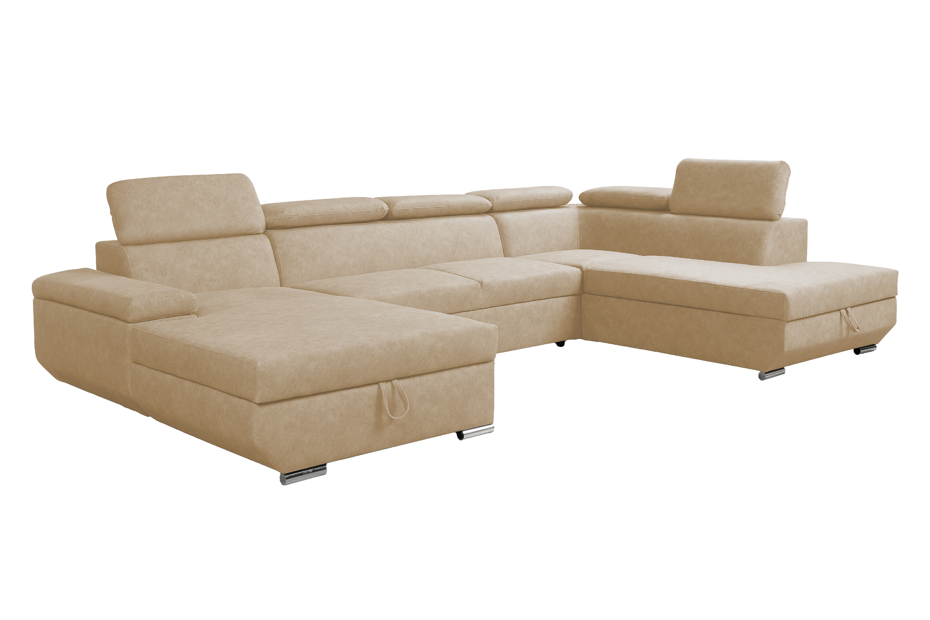 Sedací souprava Lars U FORM Moderní tvary sedací soupravy Lars se stanou středobodem dění vašeho obývacího pokoje. Díky polohovatelným opěrkám hlavy vám sedací souprava poskytne maximální pohodlí, které požadujete. • Vlastnosti sedací soupravy Lars Kostra sedací soupravy Kostra sedací soupravy tvoří tvrdé a měkké dřevo. Výplň sedáků a opěradel Na výplň jsou použity pružiny Faliste a PUR pěna. Opěrky hlavy Součástí opěrných zad jsou polohovatelné opěrky hlavy. Čalouněná záda Díky čalouněným zádům můžete sedací soupravu umístit i do prostoru. Varianta strany Při objednání si lze zvolit stranu sedací soupravy. Funkce sedací soupravy Nedílnou součástí sedací soupravy jsou také dva úložné prostory a možnost rozkladu pro příležitostné přespání. • Levá varianta Pravá varianta • Úložné prostorySoučástí sedací soupravy Lars U FORM jsou úložné prostory, které vám nabídnou dostatek prostoru. Vnitřek je z bílé a lehce omyvatelné desky.Rozkládací plochaRozkládací spací plocha je příjemná při denním odpočinku, ale je i pro příležitostné přespávání. Rozklad je čalouněný. Sedačka se rozloží snadným vysunutím rozkládací plochy z pod sedáku. • Rozměry 335 cm celková šířka 96 cm výška se zvednutými opěrkami hlavy 78 cm výška s položenými opěrkami hlavy 218 cm celková hloubka delšího otomanu 190 cm celková hloubka kratšího otomanu 125 x 265 cm plocha na spaní 97 cm šířka delšího otomanu 100 cm šířka kratšího otomanu 58 cm hloubka sedáku 40 cm výška sedu • Potahová látka LoganLátka LOGAN je řazena mezi sametové látky. Svou texturou je podobná kůži, která dodá danému interiéru nádech luxusu. Na dotek je velmi příjemná a působí hřejivým dojmem. Také je velmi odolná vůči oděru. Díky široké škále barev vám umožní vybrat si tu svou, která doplní váš domov. Logan Camel Logan Mostaza Logan Forest Logan Sky Logan Graphite Logan Black • Další varianty sedací soupravy Lars Sedací souprava Lars Zobrazit... Sedací souprava Lars I. Zobrazit... Sedací souprava Lars U FORM Zobrazit... Sedací souprava Lars U UNI Zobrazit... •