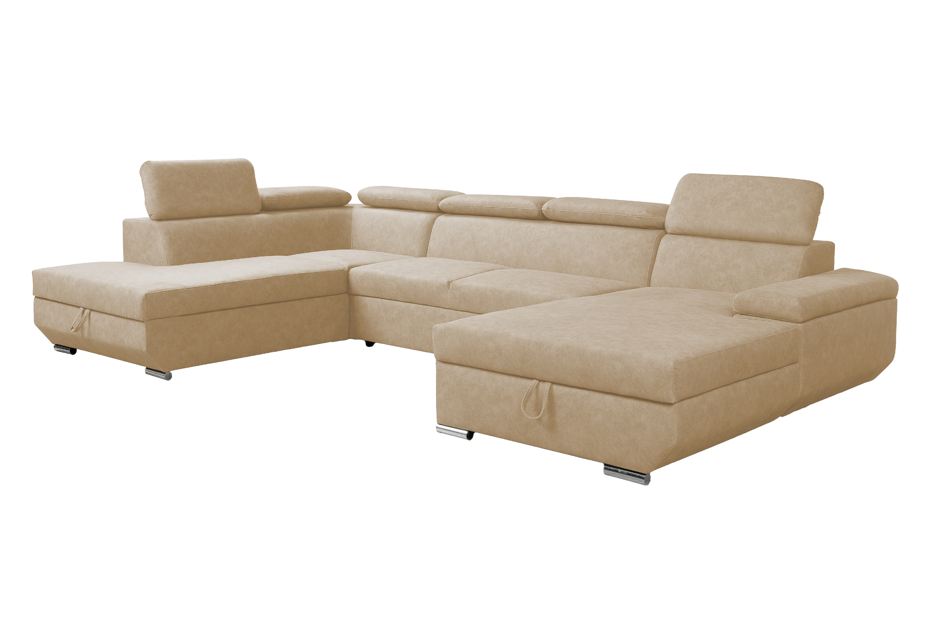 Sedací souprava Lars U FORM Moderní tvary sedací soupravy Lars se stanou středobodem dění vašeho obývacího pokoje. Díky polohovatelným opěrkám hlavy vám sedací souprava poskytne maximální pohodlí, které požadujete. • Vlastnosti sedací soupravy Lars Kostra sedací soupravy Kostra sedací soupravy tvoří tvrdé a měkké dřevo. Výplň sedáků a opěradel Na výplň jsou použity pružiny Faliste a PUR pěna. Opěrky hlavy Součástí opěrných zad jsou polohovatelné opěrky hlavy. Čalouněná záda Díky čalouněným zádům můžete sedací soupravu umístit i do prostoru. Varianta strany Při objednání si lze zvolit stranu sedací soupravy. Funkce sedací soupravy Nedílnou součástí sedací soupravy jsou také dva úložné prostory a možnost rozkladu pro příležitostné přespání. • Levá varianta Pravá varianta • Úložné prostorySoučástí sedací soupravy Lars U FORM jsou úložné prostory, které vám nabídnou dostatek prostoru. Vnitřek je z bílé a lehce omyvatelné desky.Rozkládací plochaRozkládací spací plocha je příjemná při denním odpočinku, ale je i pro příležitostné přespávání. Rozklad je čalouněný. Sedačka se rozloží snadným vysunutím rozkládací plochy z pod sedáku. • Rozměry 335 cm celková šířka 96 cm výška se zvednutými opěrkami hlavy 78 cm výška s položenými opěrkami hlavy 218 cm celková hloubka delšího otomanu 190 cm celková hloubka kratšího otomanu 125 x 265 cm plocha na spaní 97 cm šířka delšího otomanu 100 cm šířka kratšího otomanu 58 cm hloubka sedáku 40 cm výška sedu • Potahová látka LoganLátka LOGAN je řazena mezi sametové látky. Svou texturou je podobná kůži, která dodá danému interiéru nádech luxusu. Na dotek je velmi příjemná a působí hřejivým dojmem. Také je velmi odolná vůči oděru. Díky široké škále barev vám umožní vybrat si tu svou, která doplní váš domov. Logan Camel Logan Mostaza Logan Forest Logan Sky Logan Graphite Logan Black • Další varianty sedací soupravy Lars Sedací souprava Lars Zobrazit... Sedací souprava Lars I. Zobrazit... Sedací souprava Lars U FORM Zobrazit... Sedací souprava Lars U UNI Zobrazit... •