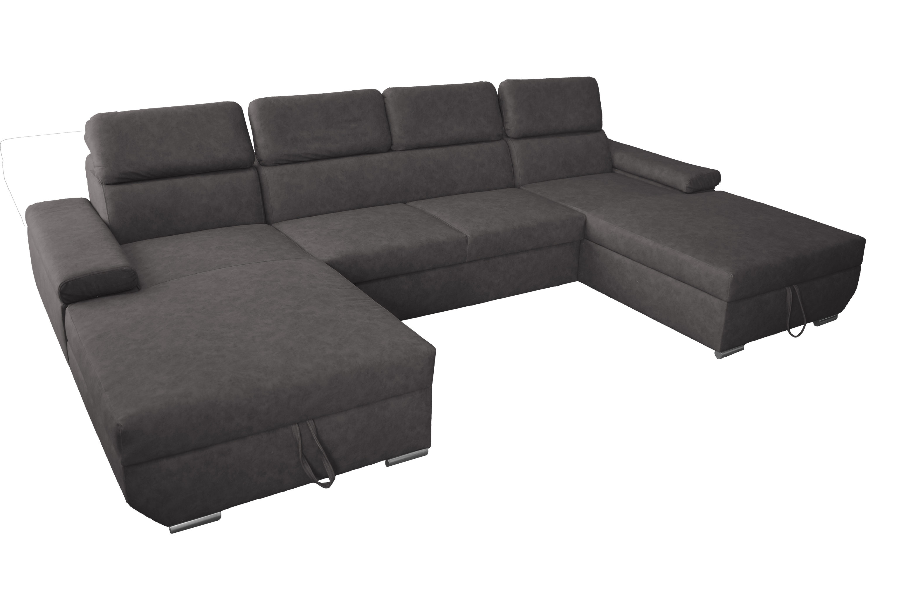 Sedací souprava Lars U UNI Moderní tvary sedací soupravy Lars se stanou středobodem dění vašeho obývacího pokoje. Díky polohovatelným opěrkám hlavy vám sedací souprava poskytne maximální pohodlí, které požadujete. • Vlastnosti sedací soupravy Lars Kostra sedací soupravy Kostra sedací soupravy tvoří tvrdé a měkké dřevo. Výplň sedáků a opěradel Na výplň jsou použity pružiny Faliste a PUR pěna. Opěrky hlavy Součástí opěrných zad jsou polohovatelné opěrky hlavy. Čalouněná záda Díky čalouněným zádům můžete sedací soupravu umístit i do prostoru. Varianta strany Sedací souprava má dvě stejné lenošky / otomany, není tak nutné vybírat stranu sedací soupravy. Funkce sedací soupravy Nedílnou součástí sedací soupravy jsou také dva úložné prostory a možnost rozkladu pro příležitostné přespání. • Úložné prostorySoučástí sedací soupravy Lars U UNI jsou úložné prostory, které vám nabídnou dostatek prostoru. Vnitřek je z bílé a lehce omyvatelné desky.Rozkládací plochaRozkládací spací plocha je příjemná při denním odpočinku, ale je i pro příležitostné přespávání. Rozklad je čalouněný. Sedačka se rozloží snadným vysunutím rozkládací plochy z pod sedáku. • Rozměry 335 cm celková šířka 96 cm výška se zvednutými opěrkami hlavy 78 cm výška se sklopenými opěrkami hlavy 190 cm celková hloubka otomanů 122 x 283 cm plocha na spaní 100 cm šířka otomanů 58 cm hloubka sedáku 40 cm výška sedu • Potahová látka LoganLátka LOGAN je řazena mezi sametové látky. Svou texturou je podobná kůži, která dodá danému interiéru nádech luxusu. Na dotek je velmi příjemná a působí hřejivým dojmem. Také je velmi odolná vůči oděru. Díky široké škále barev vám umožní vybrat si tu svou, která doplní váš domov. • Další varianty sedací soupravy Lars Sedací souprava Lars Zobrazit... Sedací souprava Lars I. Zobrazit... Sedací souprava Lars U FORM Zobrazit... Sedací souprava Lars U UNI Zobrazit... •
