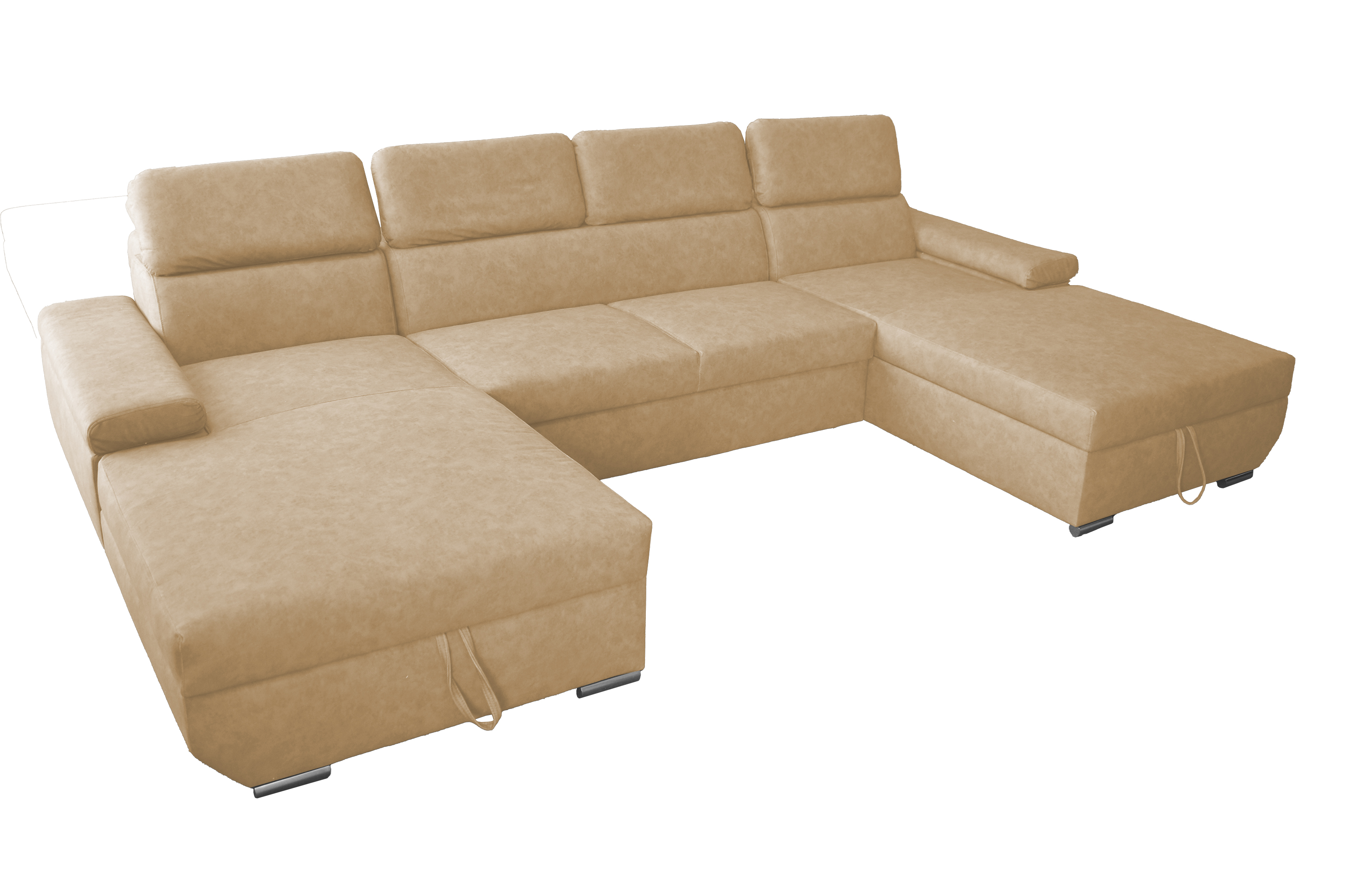 Sedací souprava Lars U UNI Moderní tvary sedací soupravy Lars se stanou středobodem dění vašeho obývacího pokoje. Díky polohovatelným opěrkám hlavy vám sedací souprava poskytne maximální pohodlí, které požadujete.  • Vlastnosti sedací soupravy Lars Kostra sedací soupravy Kostra sedací soupravy tvoří tvrdé a měkké dřevo.  Výplň sedáků a opěradel Na výplň jsou použity pružiny Faliste a PUR pěna. Opěrky hlavy Součástí opěrných zad jsou polohovatelné opěrky hlavy. Čalouněná záda Díky čalouněným zádům můžete sedací soupravu umístit i do prostoru. Varianta strany Sedací souprava má dvě stejné lenošky / otomany, není tak nutné vybírat stranu sedací soupravy. Funkce sedací soupravy Nedílnou součástí sedací soupravy jsou také dva úložné prostory a možnost rozkladu pro příležitostné přespání. • Úložné prostorySoučástí sedací soupravy Lars U UNI jsou úložné prostory, které vám nabídnou dostatek prostoru. Vnitřek je z bílé a lehce omyvatelné desky.Rozkládací plochaRozkládací spací plocha je příjemná při denním odpočinku, ale je i pro příležitostné přespávání. Rozklad je čalouněný. Sedačka se rozloží snadným vysunutím rozkládací plochy z pod sedáku.  • Rozměry 335 cm celková šířka 96 cm  výška se zvednutými opěrkami hlavy 78 cm  výška se sklopenými opěrkami hlavy 190 cm celková hloubka otomanů 122 x 283 cm plocha na spaní 100 cm šířka otomanů 58 cm hloubka sedáku 40 cm výška sedu • Potahová látka LoganLátka LOGAN je řazena mezi sametové látky. Svou texturou je podobná kůži, která dodá danému interiéru nádech luxusu. Na dotek je velmi příjemná a působí hřejivým dojmem. Také je velmi odolná vůči oděru. Díky široké škále barev vám umožní vybrat si tu svou, která doplní váš domov. Logan Camel Logan Mostaza Logan Forest Logan Sky Logan Graphite Logan Black • Další varianty sedací soupravy Lars Sedací souprava Lars Zobrazit... Sedací souprava Lars I. Zobrazit... Sedací souprava Lars U FORM Zobrazit... Sedací souprava Lars U UNI Zobrazit... •
