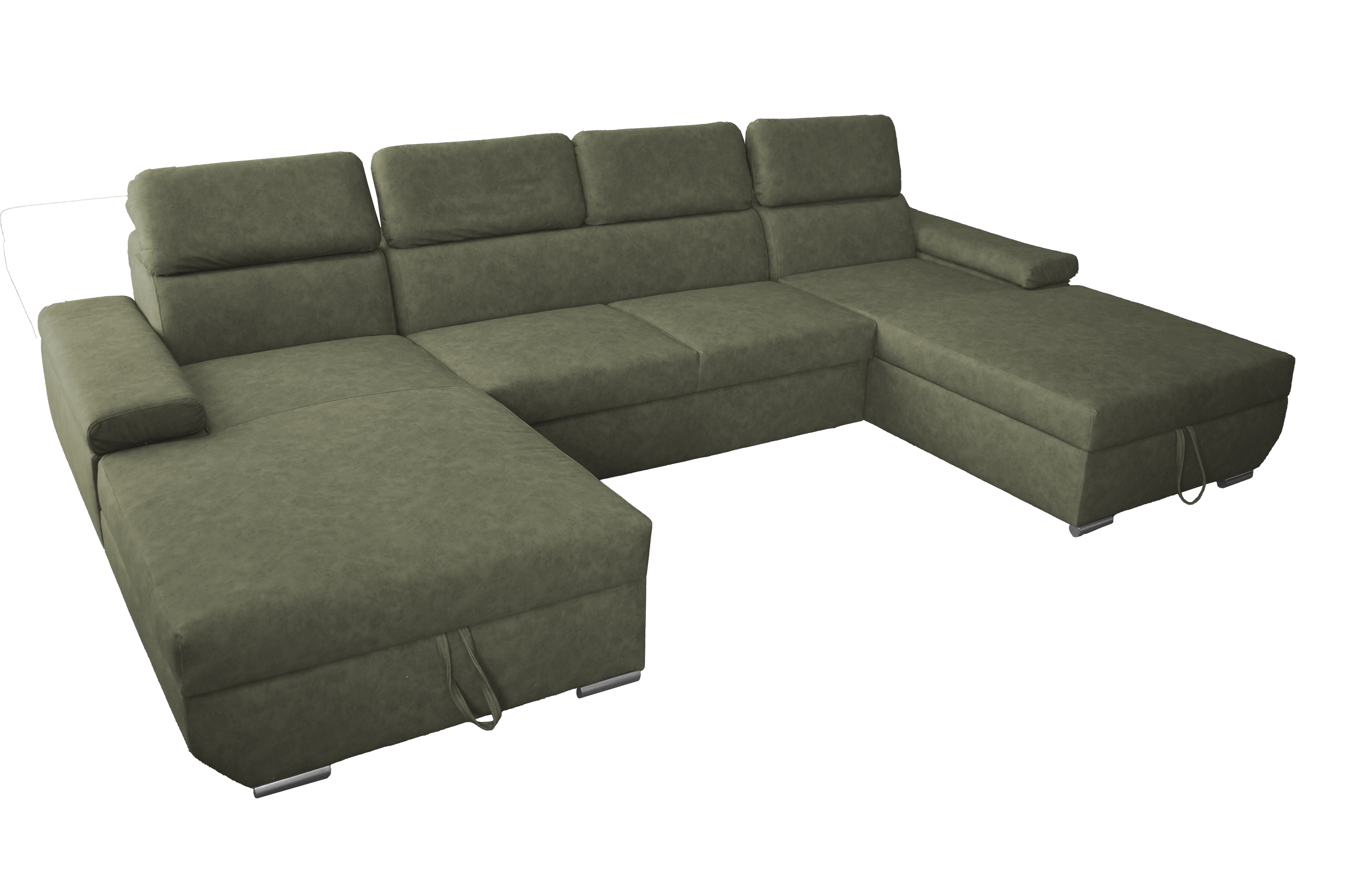 Sedací souprava Lars U UNI Moderní tvary sedací soupravy Lars se stanou středobodem dění vašeho obývacího pokoje. Díky polohovatelným opěrkám hlavy vám sedací souprava poskytne maximální pohodlí, které požadujete. • Vlastnosti sedací soupravy Lars Kostra sedací soupravy Kostra sedací soupravy tvoří tvrdé a měkké dřevo. Výplň sedáků a opěradel Na výplň jsou použity pružiny Faliste a PUR pěna. Opěrky hlavy Součástí opěrných zad jsou polohovatelné opěrky hlavy. Čalouněná záda Díky čalouněným zádům můžete sedací soupravu umístit i do prostoru. Varianta strany Sedací souprava má dvě stejné lenošky / otomany, není tak nutné vybírat stranu sedací soupravy. Funkce sedací soupravy Nedílnou součástí sedací soupravy jsou také dva úložné prostory a možnost rozkladu pro příležitostné přespání. • Úložné prostorySoučástí sedací soupravy Lars U UNI jsou úložné prostory, které vám nabídnou dostatek prostoru. Vnitřek je z bílé a lehce omyvatelné desky.Rozkládací plochaRozkládací spací plocha je příjemná při denním odpočinku, ale je i pro příležitostné přespávání. Rozklad je čalouněný. Sedačka se rozloží snadným vysunutím rozkládací plochy z pod sedáku. • Rozměry 335 cm celková šířka 96 cm výška se zvednutými opěrkami hlavy 78 cm výška se sklopenými opěrkami hlavy 190 cm celková hloubka otomanů 122 x 283 cm plocha na spaní 100 cm šířka otomanů 58 cm hloubka sedáku 40 cm výška sedu • Potahová látka LoganLátka LOGAN je řazena mezi sametové látky. Svou texturou je podobná kůži, která dodá danému interiéru nádech luxusu. Na dotek je velmi příjemná a působí hřejivým dojmem. Také je velmi odolná vůči oděru. Díky široké škále barev vám umožní vybrat si tu svou, která doplní váš domov. Logan Camel Logan Mostaza Logan Forest Logan Sky Logan Graphite Logan Black • Další varianty sedací soupravy Lars Sedací souprava Lars Zobrazit... Sedací souprava Lars I. Zobrazit... Sedací souprava Lars U FORM Zobrazit... Sedací souprava Lars U UNI Zobrazit... •