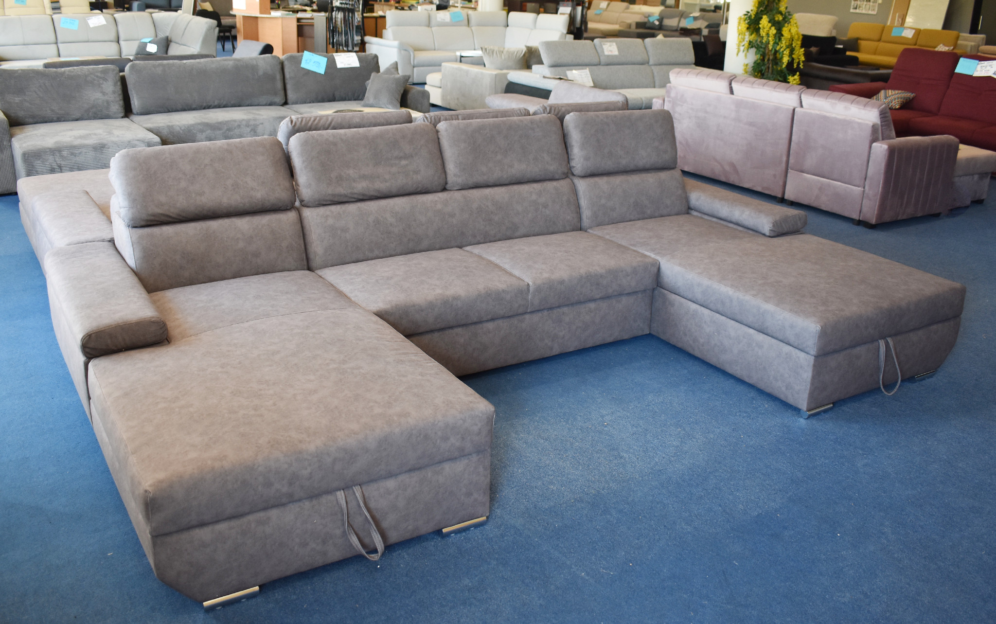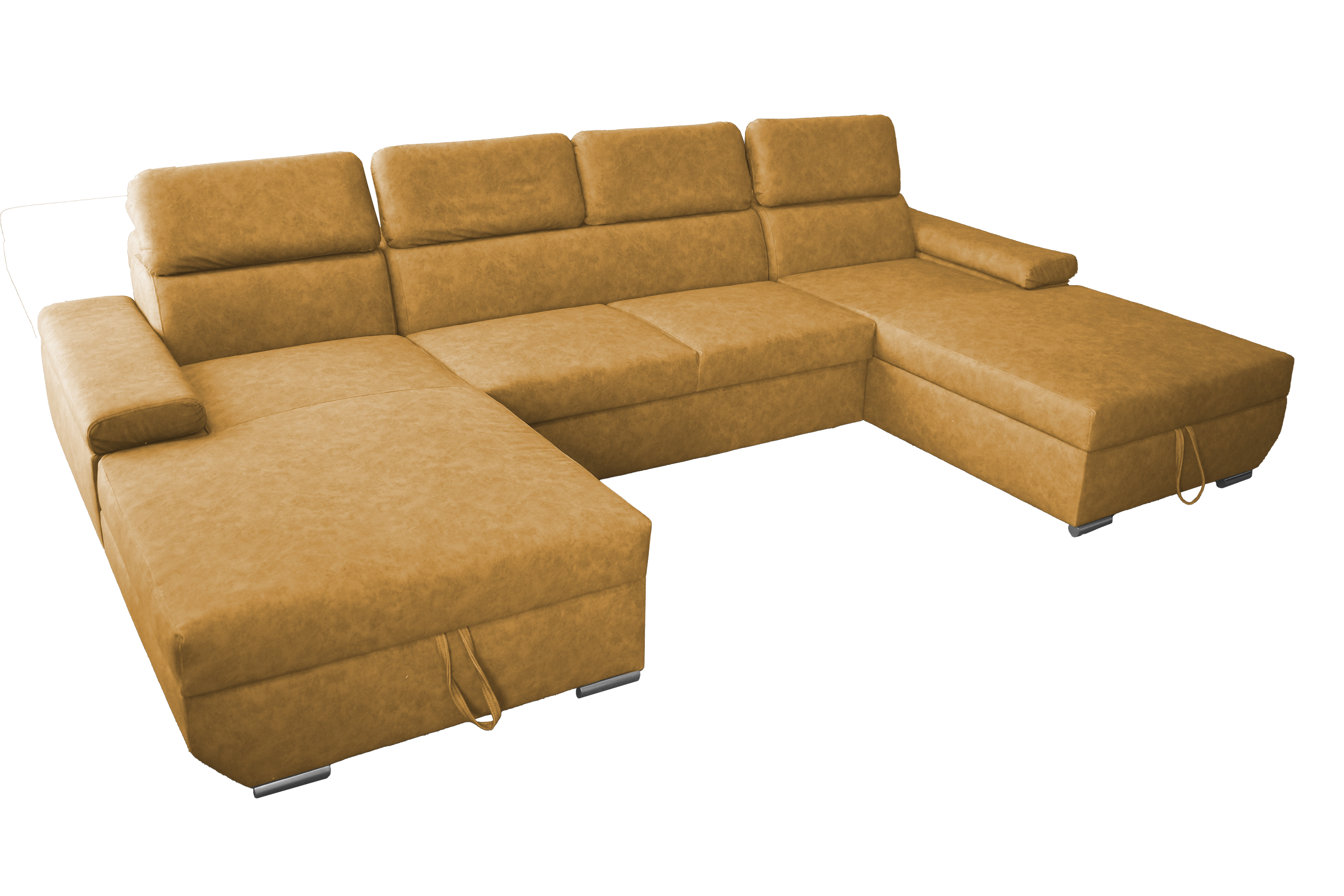 Sedací souprava Lars U UNI Moderní tvary sedací soupravy Lars se stanou středobodem dění vašeho obývacího pokoje. Díky polohovatelným opěrkám hlavy vám sedací souprava poskytne maximální pohodlí, které požadujete. • Vlastnosti sedací soupravy Lars Kostra sedací soupravy Kostra sedací soupravy tvoří tvrdé a měkké dřevo. Výplň sedáků a opěradel Na výplň jsou použity pružiny Faliste a PUR pěna. Opěrky hlavy Součástí opěrných zad jsou polohovatelné opěrky hlavy. Čalouněná záda Díky čalouněným zádům můžete sedací soupravu umístit i do prostoru. Varianta strany Sedací souprava má dvě stejné lenošky / otomany, není tak nutné vybírat stranu sedací soupravy. Funkce sedací soupravy Nedílnou součástí sedací soupravy jsou také dva úložné prostory a možnost rozkladu pro příležitostné přespání. • Úložné prostorySoučástí sedací soupravy Lars U UNI jsou úložné prostory, které vám nabídnou dostatek prostoru. Vnitřek je z bílé a lehce omyvatelné desky.Rozkládací plochaRozkládací spací plocha je příjemná při denním odpočinku, ale je i pro příležitostné přespávání. Rozklad je čalouněný. Sedačka se rozloží snadným vysunutím rozkládací plochy z pod sedáku. • Rozměry 335 cm celková šířka 96 cm výška se zvednutými opěrkami hlavy 78 cm výška se sklopenými opěrkami hlavy 190 cm celková hloubka otomanů 122 x 283 cm plocha na spaní 100 cm šířka otomanů 58 cm hloubka sedáku 40 cm výška sedu • Potahová látka LoganLátka LOGAN je řazena mezi sametové látky. Svou texturou je podobná kůži, která dodá danému interiéru nádech luxusu. Na dotek je velmi příjemná a působí hřejivým dojmem. Také je velmi odolná vůči oděru. Díky široké škále barev vám umožní vybrat si tu svou, která doplní váš domov. Logan Camel Logan Mostaza Logan Forest Logan Sky Logan Graphite Logan Black • Další varianty sedací soupravy Lars Sedací souprava Lars Zobrazit... Sedací souprava Lars I. Zobrazit... Sedací souprava Lars U FORM Zobrazit... Sedací souprava Lars U UNI Zobrazit... •