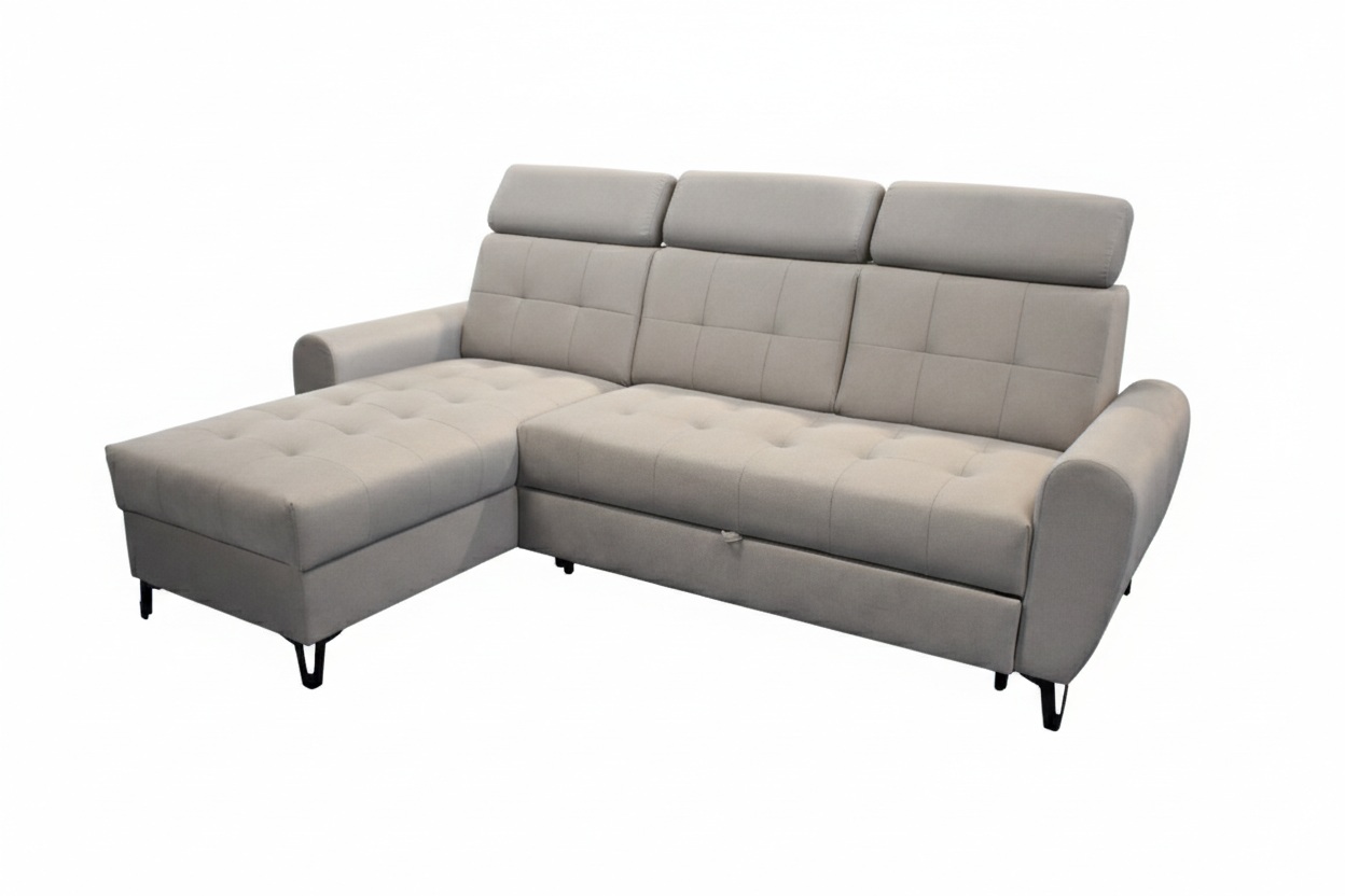 Sedací souprava Lawente Sedací souprava Lawente je moderní a kombinuje stylový design s funkčností, je tak ideálním řešením pro Váš obývací prostor. • Vlastnosti: Kostra sedací souprava Kostra sedací soupravy je vyrobena z měkkého a tvrdého dřeva. Výplň Na výplň jsou použity pružiny typu Bonell a PUR pěna. Čalouněná záda Díky čalouněným zádům lze umístit sedací soupravu do prostoru. Nožičky Sedací souprava stojí na kovových nožičkách. Funkce sedací soupravy Sedací souprava nabídne také úložný prostor a možnost rozkladu pro příležitostné spaní. • Rozklad na lůžko Přeměna sedačky na pohodlné lůžko je snadná a rychlá díky jednoduchému rozkládacímu mechanismu. Samotná rozkládací část je diskrétně ukryta ve výsuvném šuplíku. Když ji vytáhnete a zvednete za madlo, vytvoří se dostatečně velká plocha pro pohodlný odpočinek. • Úložný prostor Sedací souprava disponuje praktickým úložným prostorem umístěným pod otomanem. Tento prostor nabízí dostatek místa pro uskladnění věcí. • Polohovací opěrky hlavy Sedací souprava je vybavena třemi polohovacími opěrkami za hlavou. Manipulace je snadná a jednoduchá díky kvalitnímu sklopnému mechanismu. • Rozměry 240 cm celková šířka 110 cm výška s opěrkami hlavy 162 cm celková hloubka 123x206 cm plocha na spaní 74 cm šířka otomanu 85 cm Výška bez opěrek hlavy 55 cm hloubka sedáku 47 cm výška sedu 12 cm výška nožek • Potahová látka Portland Ash Potahová látka Portland vyniká svou jemností a vzhledem. Její hladká, sametová textura s jemným vzorem dodává každému interiéru nádech elegance. Díky technologii Antistain neabsorbuje tekutiny ani nečistoty a její vlastnosti Pet-Friendly zabraňují zachycování zvířecích chlupů do povrchu látky a usnadňují jejich odstranění. • • Upozornění Látky prezentované na fotografiích jsou ilustračním materiálem, barvy se mohou lišit od vyobrazení na fotografiích podle nastavení vašeho zobrazovacího zařízení.