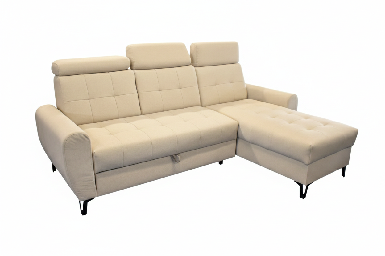 Sedací souprava Lawente Sedací souprava Lawente je moderní a kombinuje stylový design s funkčností, je tak ideálním řešením pro Váš obývací prostor. • Vlastnosti: Kostra sedací souprava Kostra sedací soupravy je vyrobena z měkkého a tvrdého dřeva. Výplň Na výplň jsou použity pružiny typu Bonell a PUR pěna. Čalouněná záda Díky čalouněným zádům lze umístit sedací soupravu do prostoru. Nožičky Sedací souprava stojí na kovových nožičkách. Funkce sedací soupravy Sedací souprava nabídne také úložný prostor a možnost rozkladu pro příležitostné spaní. • Rozklad na lůžko Přeměna sedačky na pohodlné lůžko je snadná a rychlá díky jednoduchému rozkládacímu mechanismu. Samotná rozkládací část je diskrétně ukryta ve výsuvném šuplíku. Když ji vytáhnete a zvednete za madlo, vytvoří se dostatečně velká plocha pro pohodlný odpočinek. • Úložný prostor Sedací souprava disponuje praktickým úložným prostorem umístěným pod otomanem. Tento prostor nabízí dostatek místa pro uskladnění věcí. • Polohovací opěrky hlavy Sedací souprava je vybavena třemi polohovacími opěrkami za hlavou. Manipulace je snadná a jednoduchá díky kvalitnímu sklopnému mechanismu. • Rozměry 240 cm celková šířka 110 cm výška s opěrkami hlavy 162 cm celková hloubka 123x206 cm plocha na spaní 74 cm šířka otomanu 85 cm Výška bez opěrek hlavy 55 cm hloubka sedáku 47 cm výška sedu 12 cm výška nožek • Potahová látka Portland Ash Potahová látka Portland vyniká svou jemností a vzhledem. Její hladká, sametová textura s jemným vzorem dodává každému interiéru nádech elegance. Díky technologii Antistain neabsorbuje tekutiny ani nečistoty a její vlastnosti Pet-Friendly zabraňují zachycování zvířecích chlupů do povrchu látky a usnadňují jejich odstranění. • • Upozornění Látky prezentované na fotografiích jsou ilustračním materiálem, barvy se mohou lišit od vyobrazení na fotografiích podle nastavení vašeho zobrazovacího zařízení.