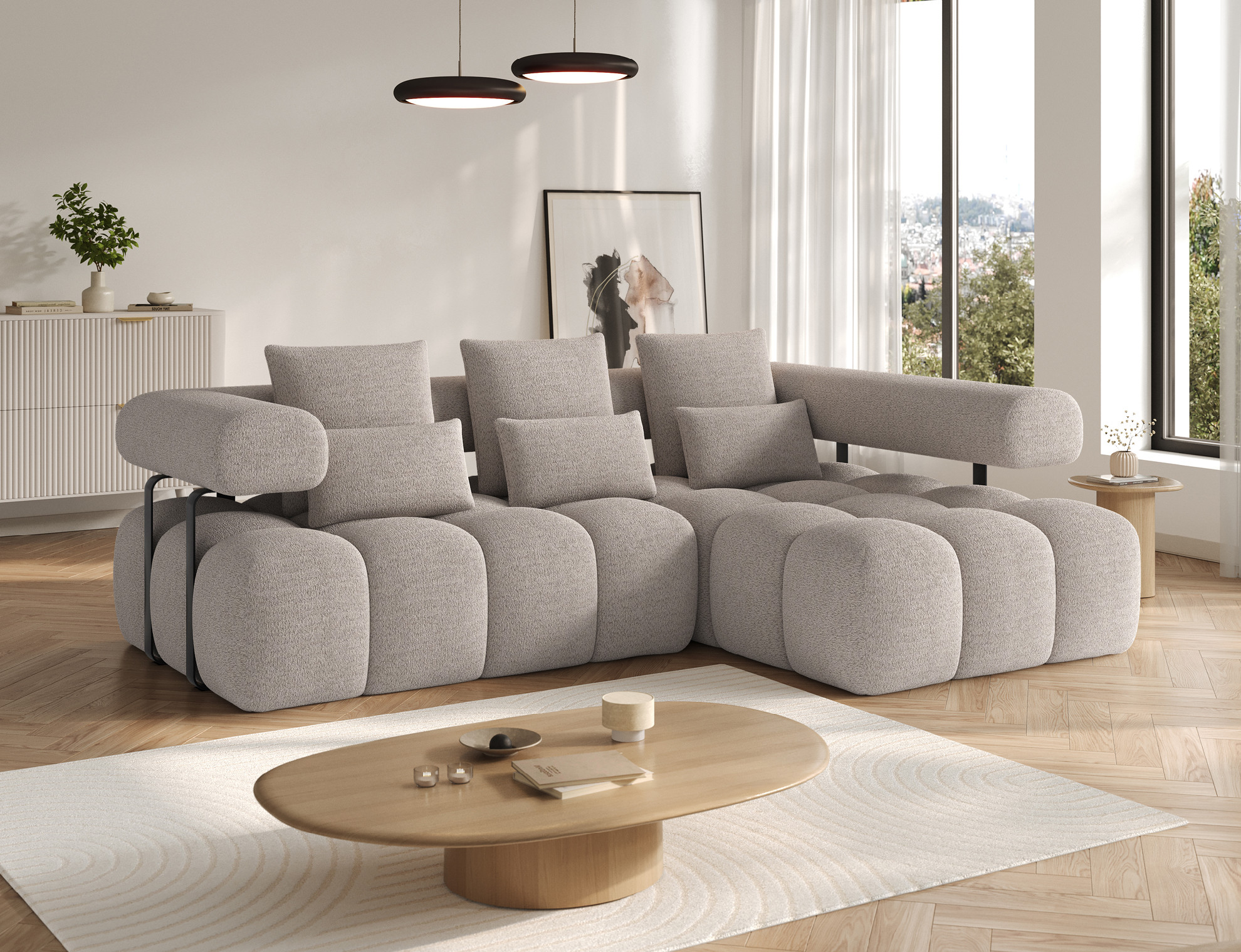 Sedací souprava Levvi Rohová sedací souprava Levvi je perfektním řešením pro ty, kteří hledají elegantní rohovou sedačku s funkcí spaní, která kombinuje moderní styl, pohodlí a praktičnost. U sedací soupravy oceníte možnost elektrického rozkladu.Sedací souprava Levvi nenabízí úložný prostor. • • Vlastnosti Kostra ze dřeva a dřevotřískové deskyNa výplň jsou použity pružiny Faliste typu B spolu s pěnou HR3030Výběr strany při objednáníBez úložného prostoruRozklad pro příležitostné přespáníČalouněná zádaElektrický rozklad do zásuvky • Varianta strany sedací soupravy Levá U Pravá U • Rozměry 260 cm celková šířka 102 cm  výška s opěrkami hlavy 184 cm celková hloubka 110 x 187 cm plocha na spaní 108 cm šířka otomanu 80 cm Výška bez opěrek hlavy 40 cm hloubka sedáku 47 cm výška sedu 24 cm šířka loketní opěrky Počet kusů sedací soupravy Levvi1. 190 x 115 x 50 cm - cca 65 kg2. 145 x 115 x 55 cm - cca 60 kg3. 160 x 64 x 25 cm - cca 30 kgJedná se o odhadované rozměry + - 5 cm / kg s ohledem na balení daného kusu.Podrobné instruktážní návodyv odkazu níže ke stažení↓↓↓>>  Montážní návod