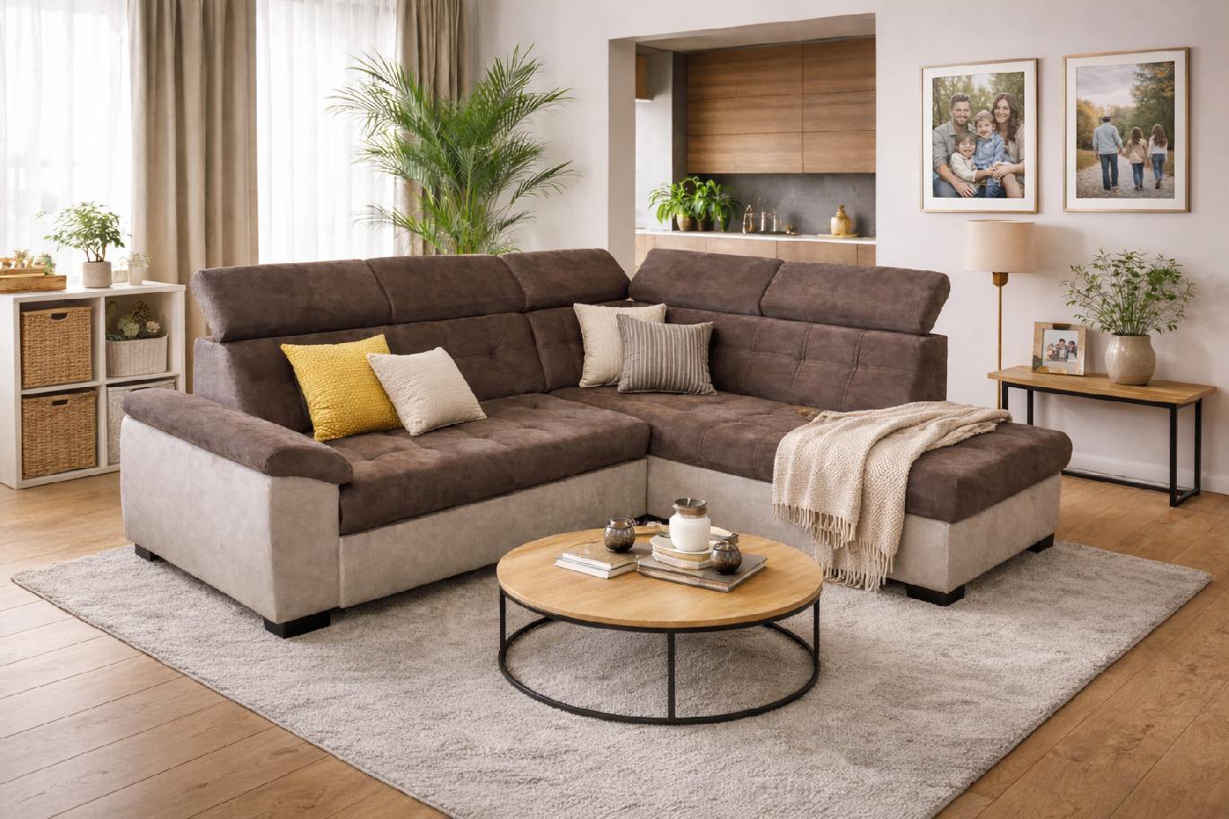 Sedací souprava Macon Hledáte ideální sedačku? Vyšší opěrná záda a polohovatelné opěrky hlavy jsou dnes standardem pro maximální pohodlí. Další výhodou je úložný prostor a možnost rozkladu pro příležitostné spaní. • Vlastnosti sedací soupravy Macon Kostra sedací soupravy Kostra sedací soupravy je vyrobena z měkkého a tvrdého dřeva. Výplň sedáků a opěradel Na výplň jsou použity pružiny Faliste a PUR pěna. Opěrky hlavy Polohovatelné opěrky hlavy. Úložný prostor Součástí otomanu je úložný prostor k úschově například lůžkovin. Rozkládací plocha Sedací soupravu lze rozložit a vytvoří se tak plocha pro příležitostné spaní. Čalouněná záda Díky čalouněným zádům sedací soupravu můžete umístit i do prostoru.  • Kódy variant pro sedací soupravu MaconLevá variantaPravá variantaOSL + 2FBP2FBL + OSP • Úložný prostorNedílnou součástí sedací soupravy je prostorný úložný prostor nacházející se v otomanu (prodlouženém rohu sedačky). Prostor je vhodný pro uskladnění lůžkovin. Vnitřek je z bílé, z lehce omyvatelné desky. Úložný prostor se otevře zvednutím sedací části otomanu.Rozkládací plochaRozkládací ložná plocha je příjemná při denním odpočinku, ale je vhodná i na příležitostné přespávání. Rozklad je čalouněný. Sedačka se rozloží snadným vysunutím rozkládací plochy z pod sedáku • Rozměry 255 cm celková šířka 91 cm  výška se sklopenými opěrkami hlavy 107 cm  výška se zvednutými opěrkami hlavy 203 cm celková hloubka 125 x 185 cm plocha na spaní 195 x 83 x 22 cm úložný prostor 95 cm šířka otomanu 59 cm hloubka sedáku 47 cm výška sedu 25 cm šířka loketní opěrky 7 cm výška nožek Počet kusů sedací soupravy Macon1. 140 x 95 x 95 cm2. 210 x 95 x 95 cmJedná se o odhadované rozměry + - 5 cm / kg s ohledem na balení daného kusu. • Potahová látka Terra NWTERRA NW je sametová čalounická tkanina, která je příjemná a měkká na dotek. Je dostupná v široké, zajímavé barevné škále, což umožňuje její snadné začlenění do různých interiérů. Díky moderní technologii PET FRIENDLY se zamezuje zachytávání zvířecích chlupů, což usnadňuje jejich odstranění. Navíc technologie WATER REPELLENT zabraňuje absorpci rozlité tekutiny, což nám poskytuje čas na její odstranění. TERRA NW má certifikaci Oeko-Tex a splňuje standard REACH, což zaručuje její bezpečnost a ekologické vlastnosti. Tato tkanina je ideální pro různé typy nábytku, jako jsou pohovky, křesla, gauče, pufy, židle a čela postelí, a perfektně doplní různé aranžmá.Kompletní vzorník látky Terra NW  Terra 6 Terra 28 Terra 39 Terra 48 Terra 63  Terra 73 Terra 80 Terra 92 • UpozorněníLátky prezentované na fotografiích jsou ilustračním materiálem, barvy se mohou lišit od vyobrazení na fotografiích podle nastavení vašeho zobrazovacího zařízení.