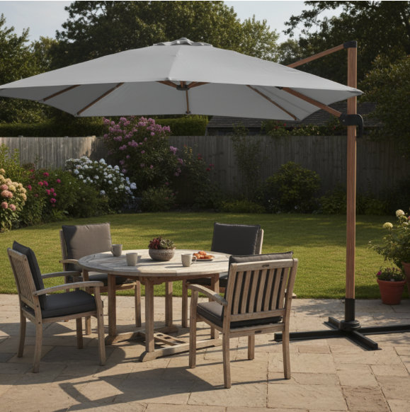 Dopřejte si příjemný stín a maximální pohodlí v letních dnech se stylovým zahradním slunečníkem ROMA 3 × 3 m, který kombinuje moderní design, praktické vlastnosti a vysokou odolnost. Tento boční slunečník je ideálním řešením do zahrady, na terasu a balkon, kde vytváří velkou stínící zónu a zároveň prostoru dodává elegantní vzhled dřeva. Velká čtvercová stříška poskytuje dostatek stínu pro rodinná setkání, grilování nebo relaxaci u kávy. Díky možnosti naklápění a otáčení o 360° můžete snadno přizpůsobit stínění pohybu slunce po celý den. Odolná oxfordská tkanina o gramáži 250 g/m² s PU zátěrem poskytuje vysokou ochranu před UV zářením i deštěm, takže můžete slunečník používat i za proměnlivého počasí. Robustní konstrukce z hliníku a oceli zajišťuje pevnost a odolnost, zatímco větrací otvor v horní části zlepšuje cirkulaci vzduchu a zvyšuje odolnost proti větru. Praktická aretační rukojeť usnadňuje rozkládání a skládání slunečníku. Tento zahradní slunečník je ideální volbou pro každého, kdo hledá spolehlivou ochranu před sluncem, funkčnost a stylový doplněk do exteriéru v jednom. Specifikace: Typ: zahradní slunečník / boční slunečník Rozměry stříšky: 300 x 300 cm Výška: 265 cm Materiál stříšky: polyester oxford, PU povrchová úprava, 250 g/m² Vodotěsnost: 6000-10000 mm Barva: šedá (s imitací dřeva) Konstrukce: hliník + ocel Profil stojanu: 53 x 77 x 2 mm Profil ramene: 25 x 40 x 3 mm Počet žeber: 8 Základna: křížová ocel Funkce: naklápění, rotace o 360° Větrání: ano (horní otvor) Ovládání: klika s aretací Pozor: vyžaduje dodatečné zatížení nebo ukotvení