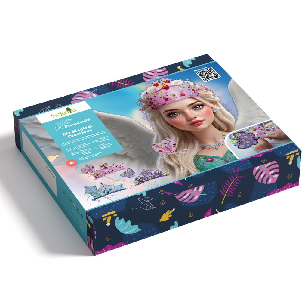 Vstupte do světa princezen a víl s touto sadou kouzelného tvoření, která dětem umožní vlastnoručně si vyrobit a ozdobit doplňky z říše fantazie. Pomocí bohatého výběru nalepovacích kamínků a dekorací si malí tvůrci vytvoří 3 zářivé korunky a 3 kouzelné hůlky, které se pod jejich rukama promění v unikátní šperky plné lesku a barev. Tato aktivita rozvíjí jemnou motoriku, trpělivost i estetické cítění a nabízí hodiny kreativní zábavy zakončené radostí z vlastnoručně vyrobených doplňků na hraní. Práce je čistá a intuitivní, ideální pro malé milovnice třpytu. Obsah balení: 3 základy pro korunky, 3 základy pro kouzelné hůlky, bohatý sortiment samolepicích dekorací a kamínků, provázky k uchycení, magnetická krabička a návod s QR kódem pro demo video. Vhodné pro děti od 4 let.