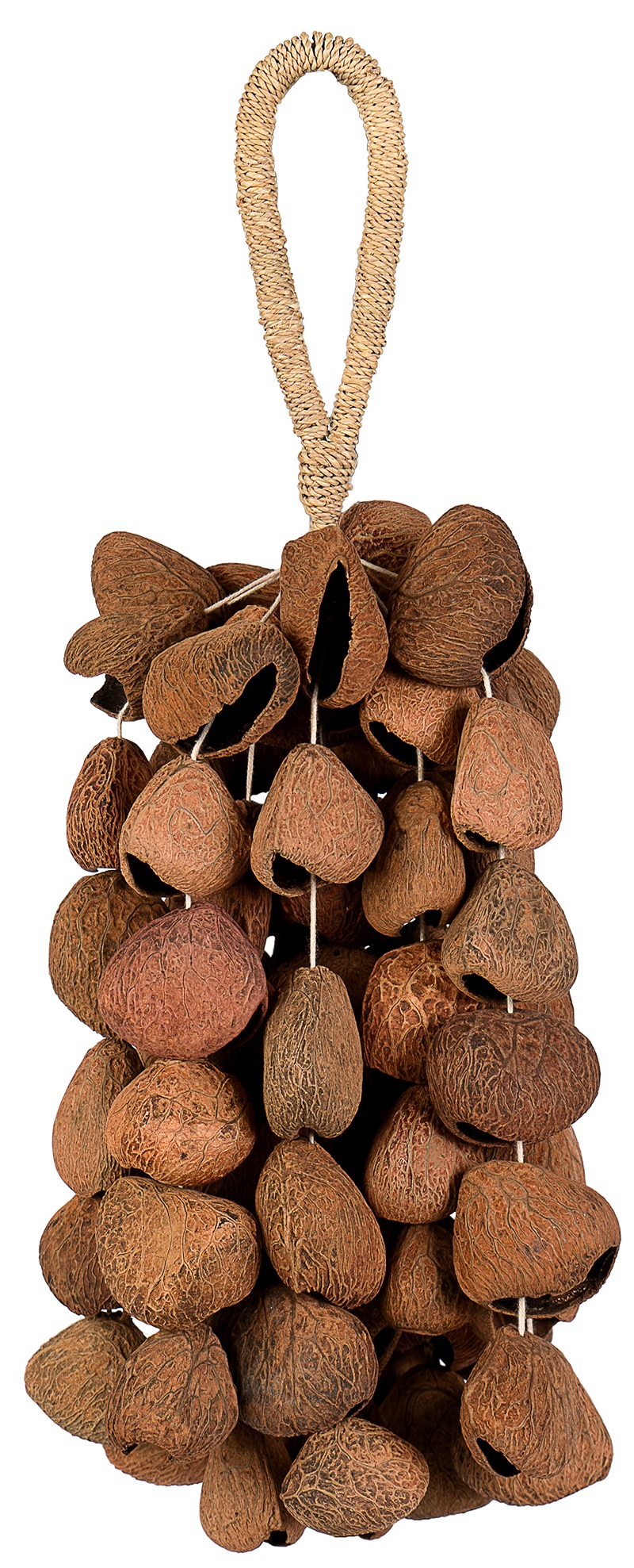 Shaker Sela Seed Shaker 6-row Pangi přináší do vašich rukou jemný a vzdušný zvuk přírody s hlubším, texturovaným charakterem. Tento ručně vyráběný shaker využívá přírodní skořápky Pangi semen, které po vyčištění a dutém opracování získávají přirozenou rezonanci a měkký, níže laděný tón s éterickou hloubkou. Výsledkem je organický, dřevitý a ambientní zvuk, který dokonale zapadá do meditačních, akustických či sound-healing p