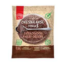 Unikátní ovesná kaše s čokoládou a kešu ořechy bez lepku obsahuje ve 100 g 3 g kyseliny alfa-linolenové (z řady omega-3 mastných kyselin), která přispívá k udržení normální hladiny cholesterolu v krvi. Příznivého účinku se dosáhne při příjmu 2 g této kyseliny denně. rychlá přípravanevaří se